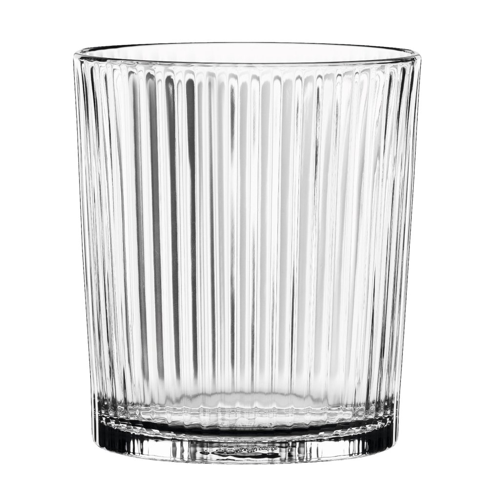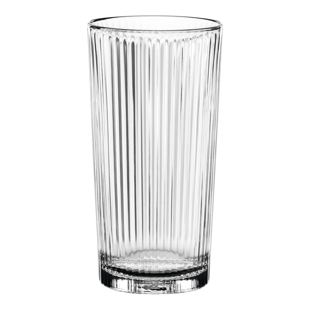 - Vertikālās rievas glāžu virsmā rada izteiksmīgus gaismas atspīdumus, kas pastiprina ielejamā dzēriena krāsu un piešķir pasniegšanai dabisku dekoratīvu efektu bez papildu rotājumiem.