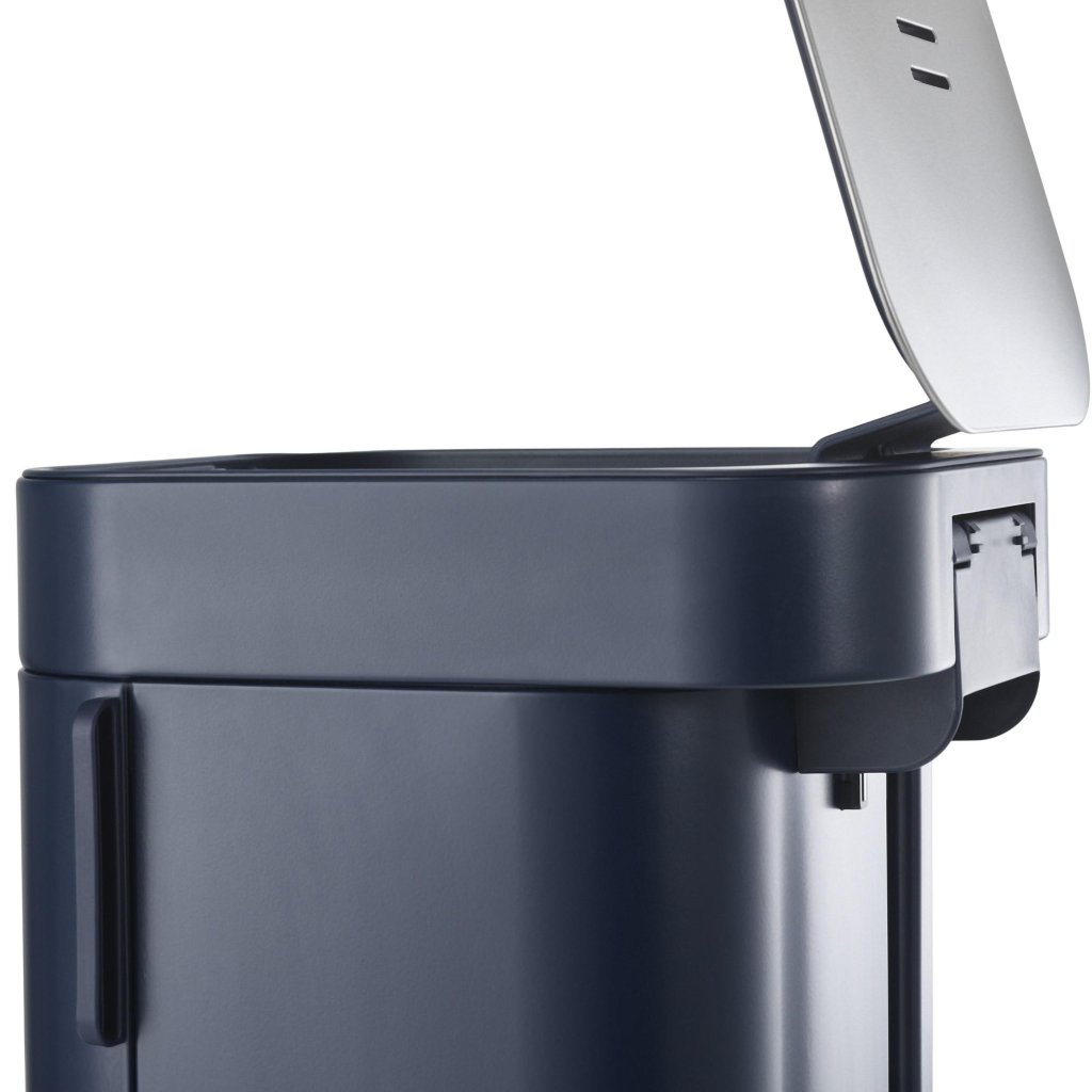 - Atkritumu tvertne ar pedāli PORTA modernā zilā krāsā piedāvā praktisku un higiēnisku risinājumu ikdienas atkritumu apsaimniekošanai virtuvē vai mājās.