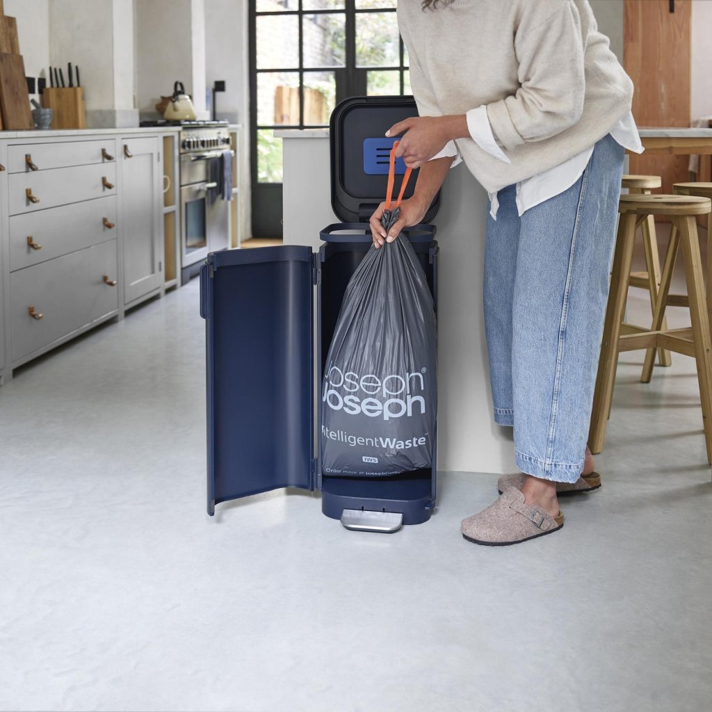 - Atkritumu tvertne ir saderīga ar Joseph Joseph IW5 maisiņiem 40 litru tilpumā, taču var izmantot arī parastus atbilstoša izmēra maisiņus.