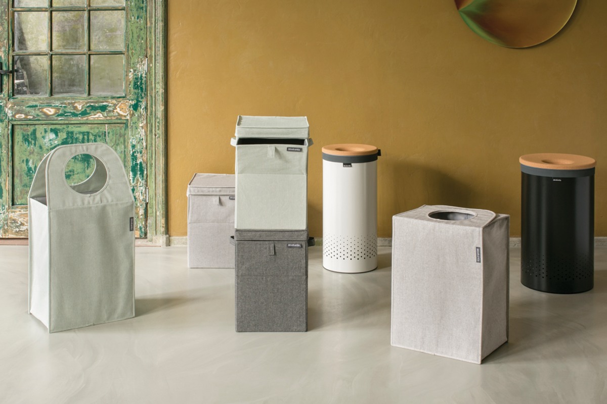 Brabantia veļas groziem ir ventilācijas atveres un "gudrs" vāks. Tiem ir neliels svars, turklāt ar vienu kustību vāks pārvēršas par rokturiem, kas atvieglo to nogādāšanu veļas mazgātavā.