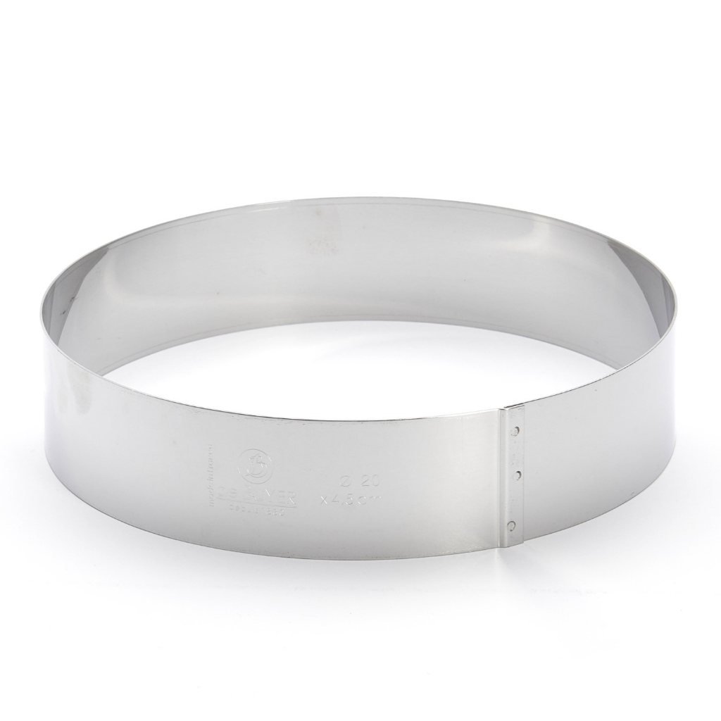 - apaļš nerūsējošā tērauda konditorejas apmale ar augstumu 4,5 cm ir paredzēta kūku, desertu salikšanai vai aukstajai formēšanai