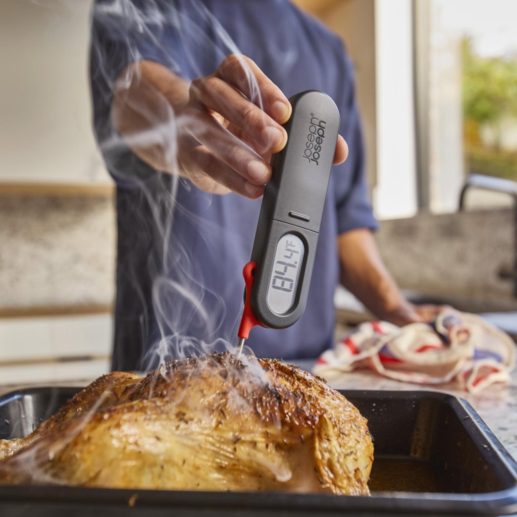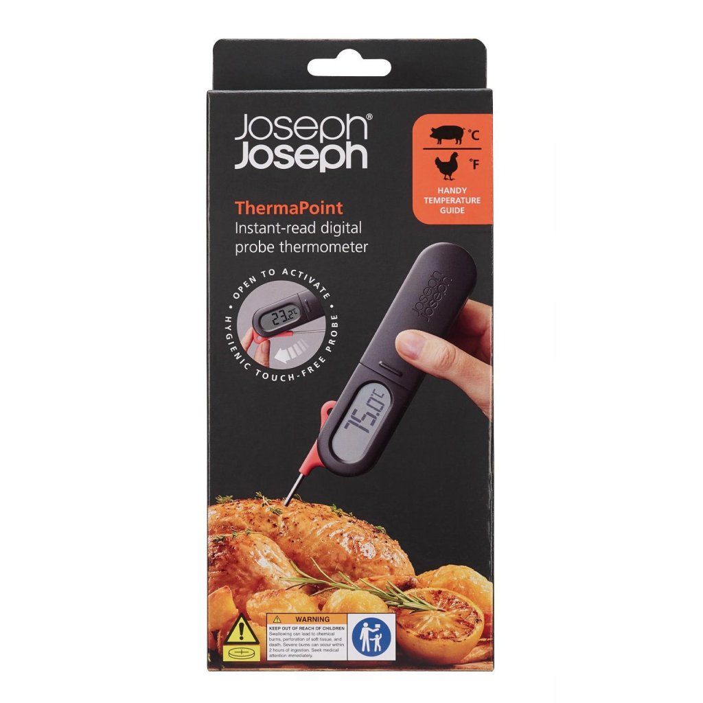 - Digitālais termometrs Joseph Joseph THERMAPOINT ir uzticams palīgs gaļas, zivju un citu ēdienu temperatūras tūlītējai un precīzai mērīšanai ikdienas gatavošanā.