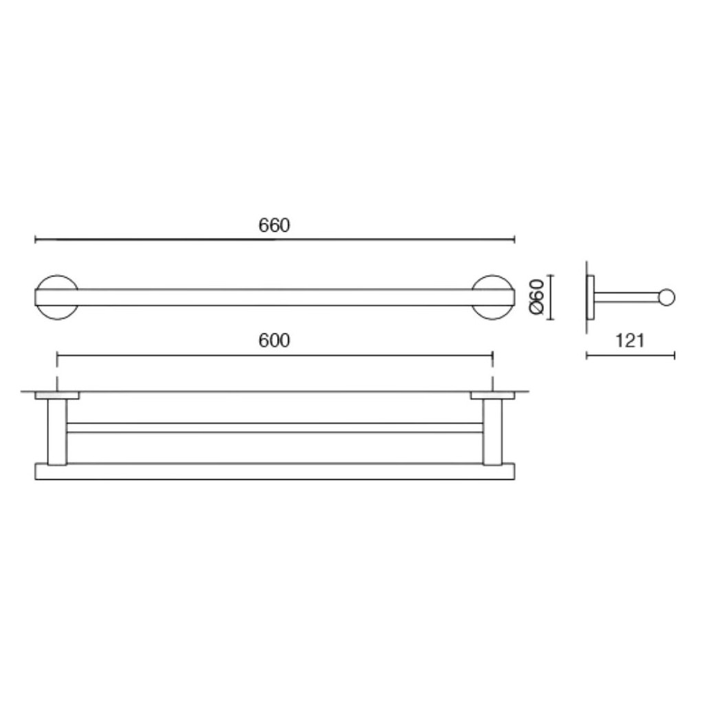 Dvieļu stanga SCALA 66 cm, dubulta, pulēta, nerūsējošs tērauds, Zack
