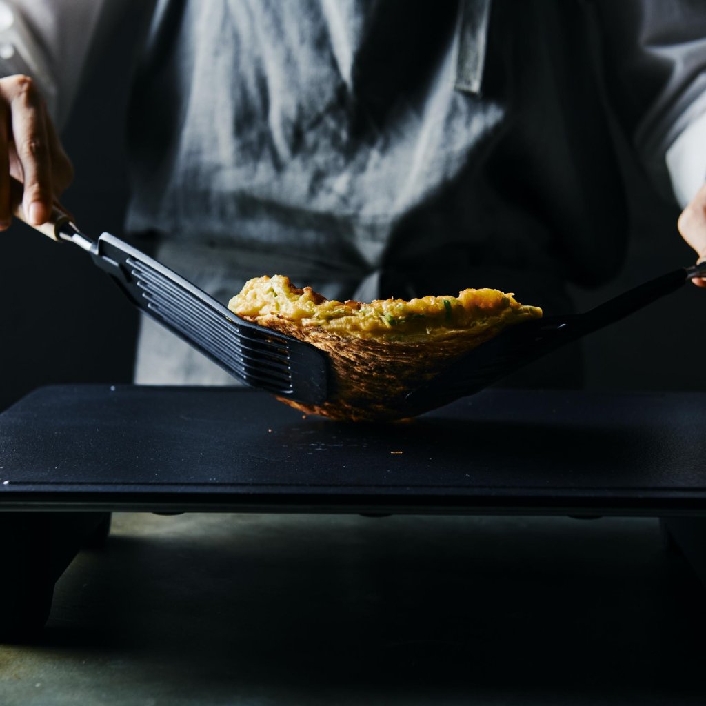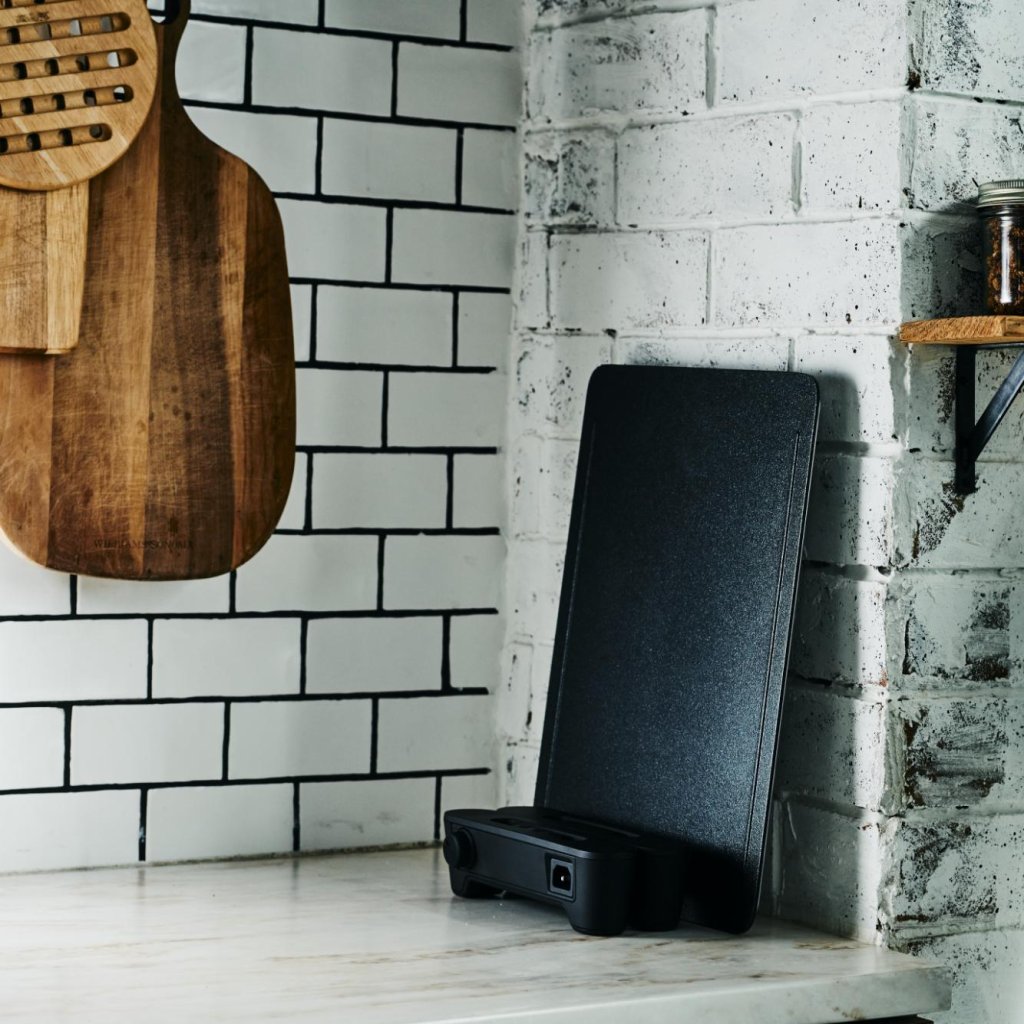 - Tā elegantā plakanā grila plāksne un slaidais profils nodrošina japāņu Teppanyaki stila gatavošanas pieredzi jūsu virtuvē un pusdienu galdā - gatavošanu, kas apvieno.