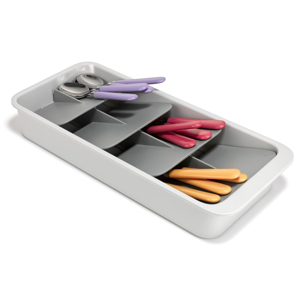 - Kompaktais galda piederumu organizators Joseph Joseph DRAWERSTORE palīdz glīti sakārtot galda piederumus pat mazākās virtuves atvilktnēs.