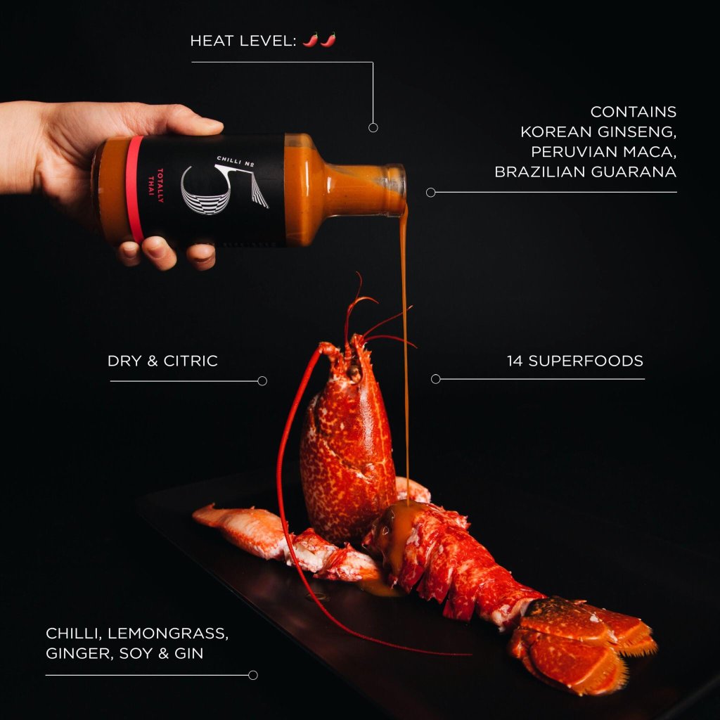 - TOTALLY THAI no Chilli No5 ir Taizemes asa mērce, kas paredzēta Āzijas virtuves cienītājiem, piedāvājot autentiskas Taizemes garšas vienā pudelē.