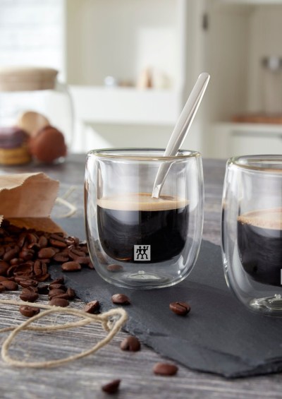 Kafiju nav obligāti jāpasniedz tikai krūzē. Kafijas glāzes ir nedaudz retro un ļoti modernas. Tās lieliski izceļ efektīgos dzērienu slāņus ar pienu.