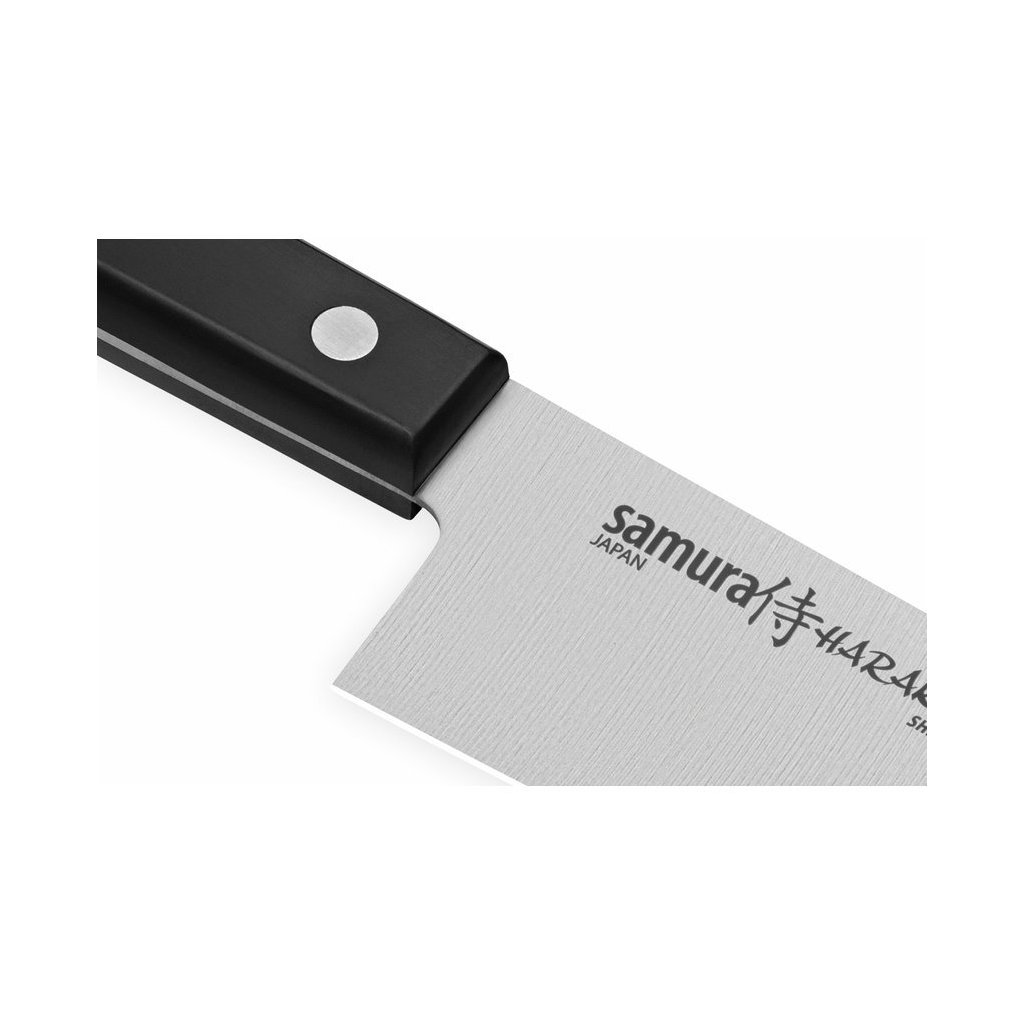 Trīs Samura Harakiri virtuves nažu komplektā ietilpst: universālais nazis (SHR-0023B) ar vidēji garu asmeni (150 mm), pavāra nazis (SHR-0085B) ar platu un garu asmeni (200 mm) un divpusējais nazis (SHR-0057W) saldētai pārtikai un maizei (180 mm).