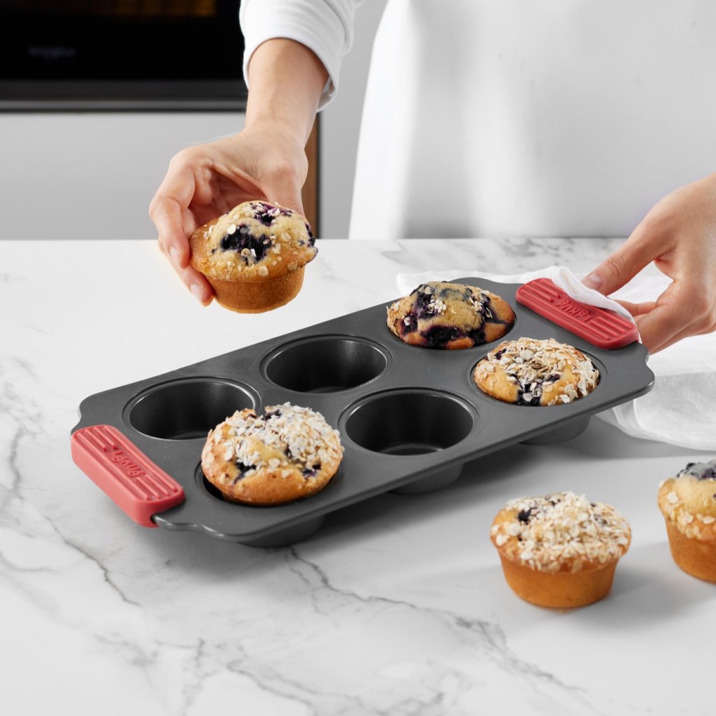 - ideāli piemērots brokastu, uzkodu, desertu vai nelielu sāļo kūku pagatavošanai, neizmantojot papīra cupcakes