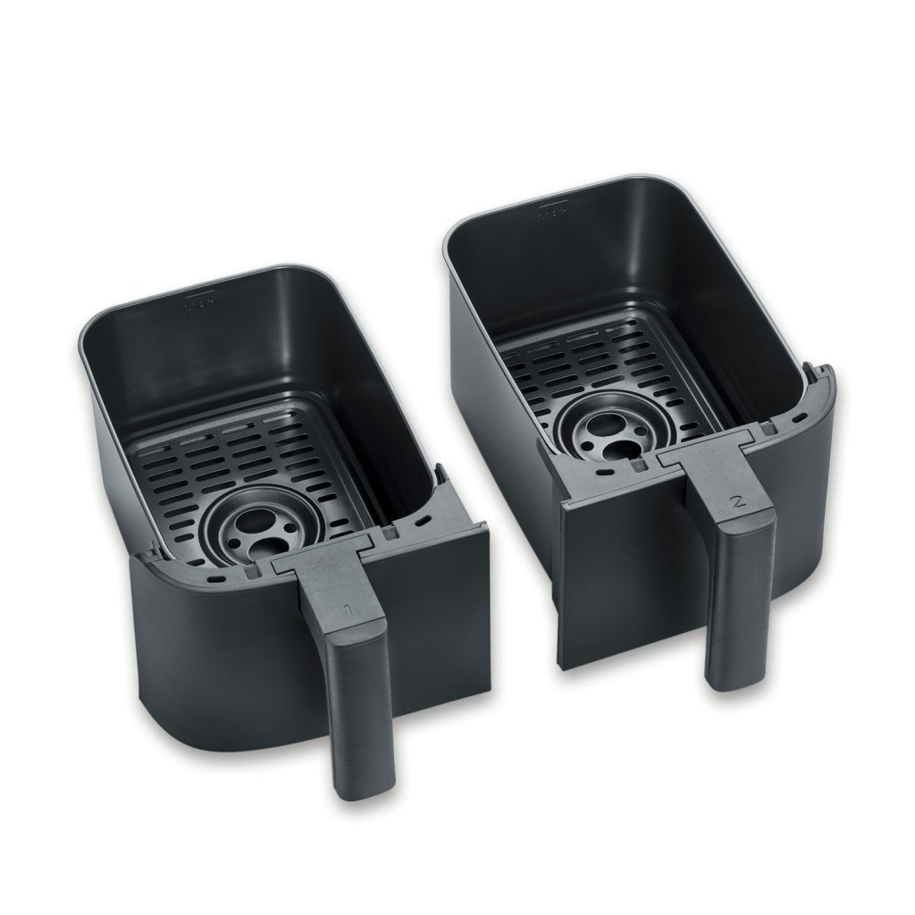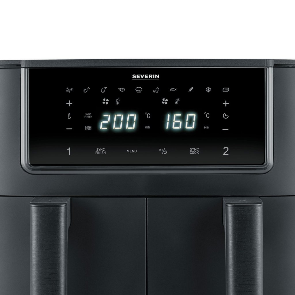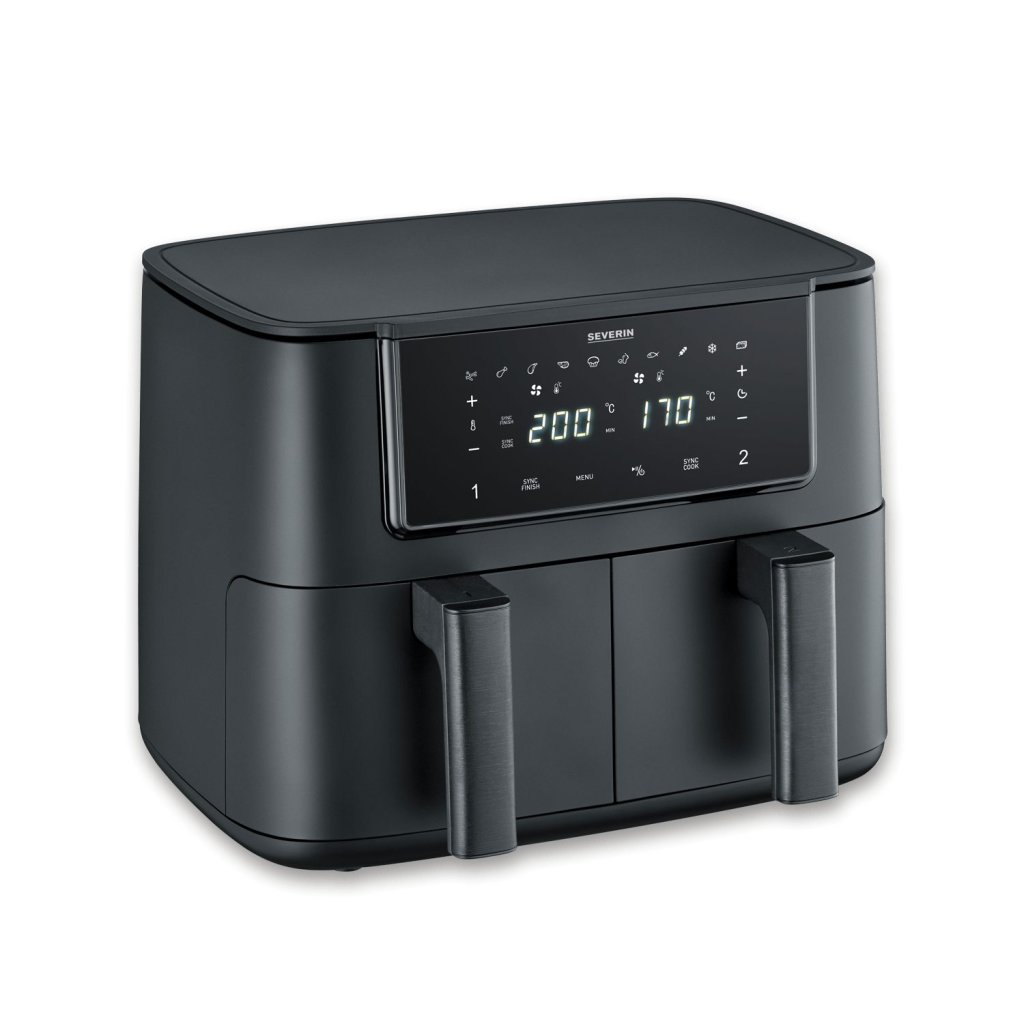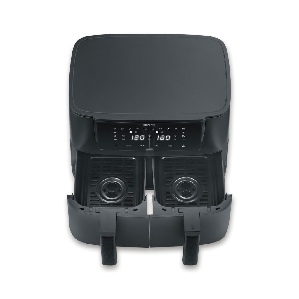 - karstā gaisa friteris Severin FR 2463 ļauj vienlaikus pagatavot divus dažādus ēdienus, pateicoties diviem 4 litru traukiem