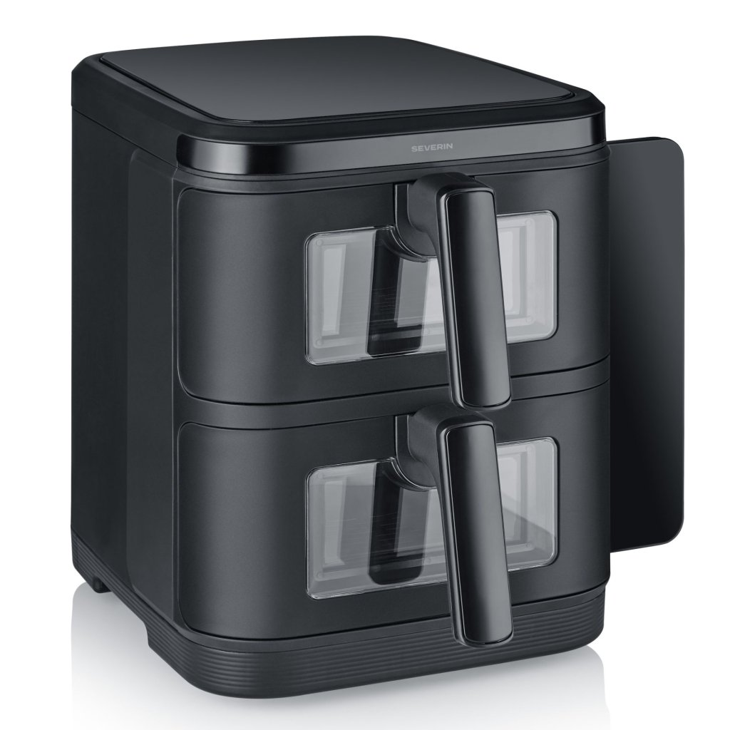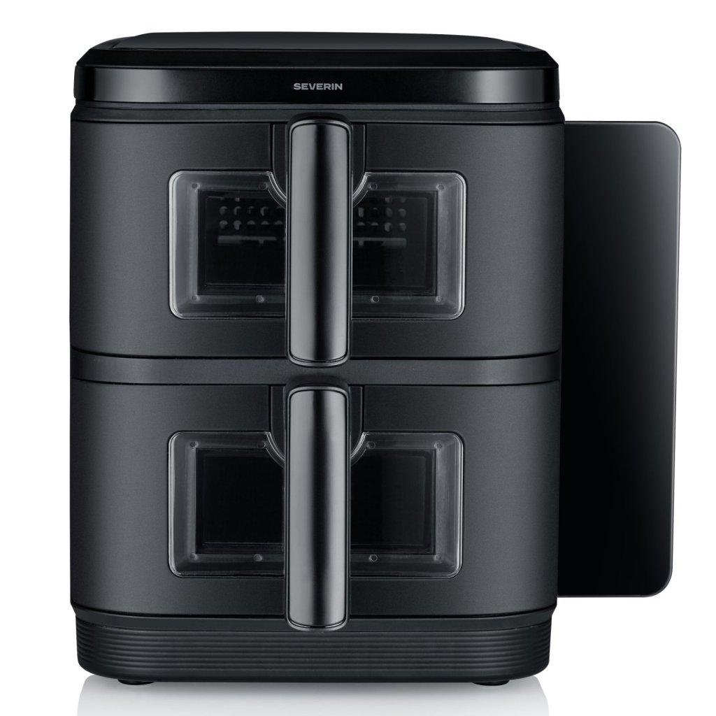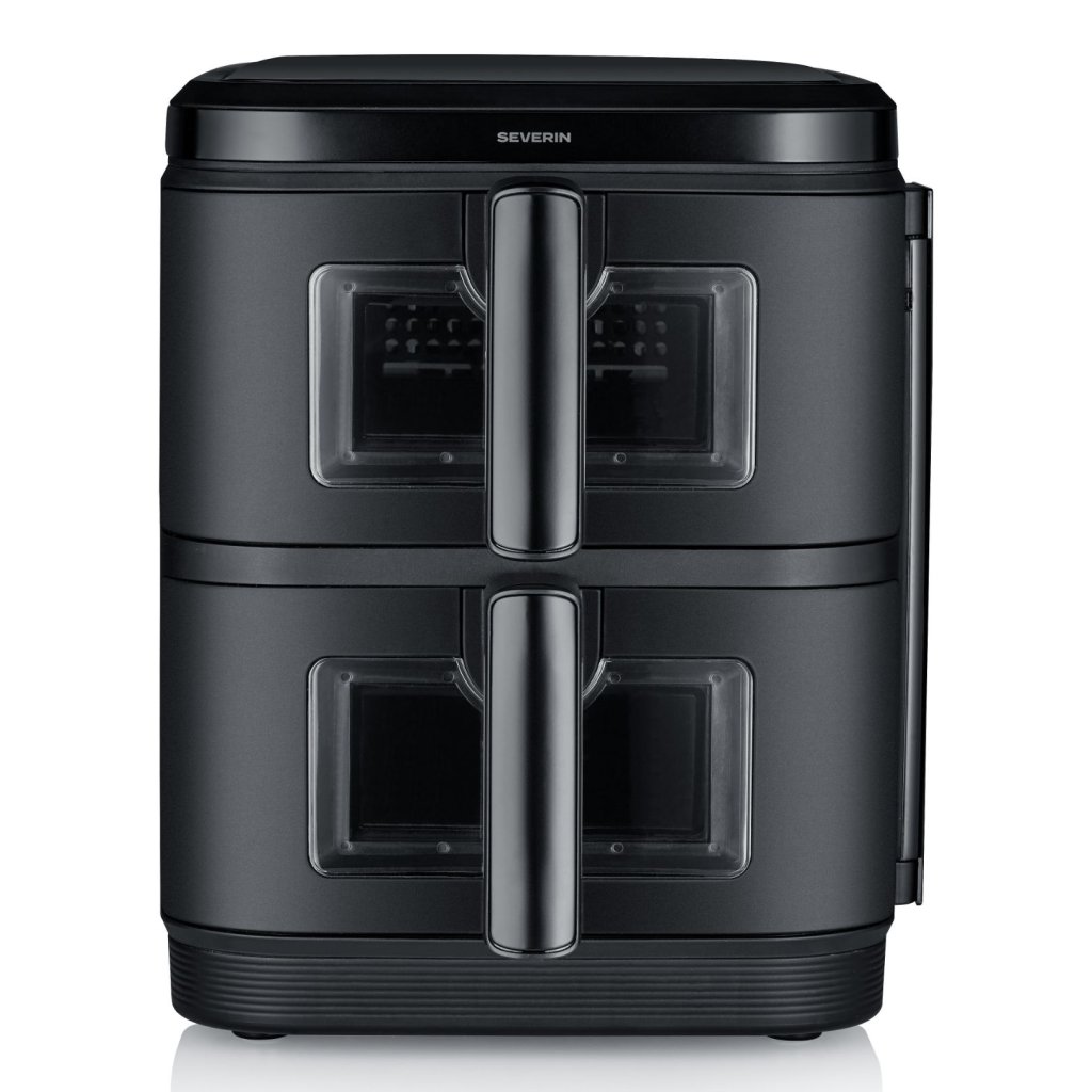 - karstā gaisa friteris Severin FR 2468 ar divkāršu izkārtojumu piedāvā veselīgu ēdienu gatavošanu bez eļļas kompaktā un jaudīgā dizainā