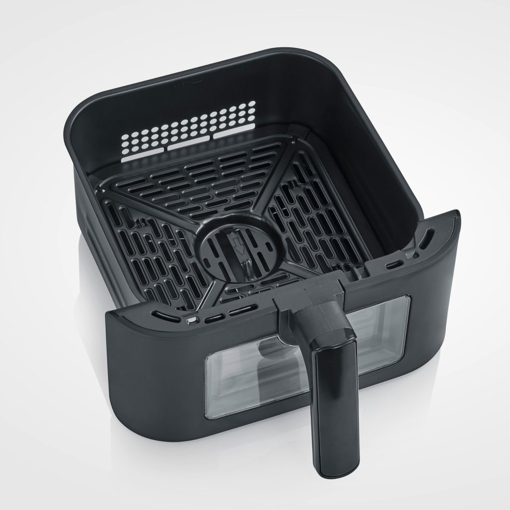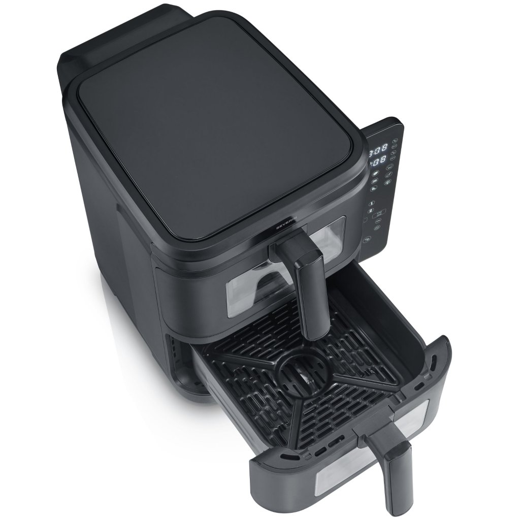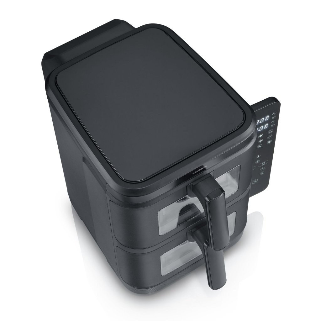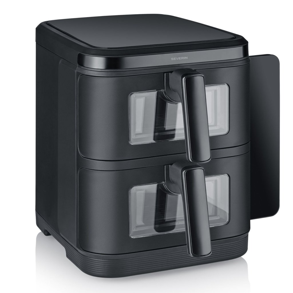 - karstā gaisa friteris Severin FR 2468 ar divkāršu izkārtojumu piedāvā veselīgu ēdienu gatavošanu bez eļļas kompaktā un jaudīgā dizainā