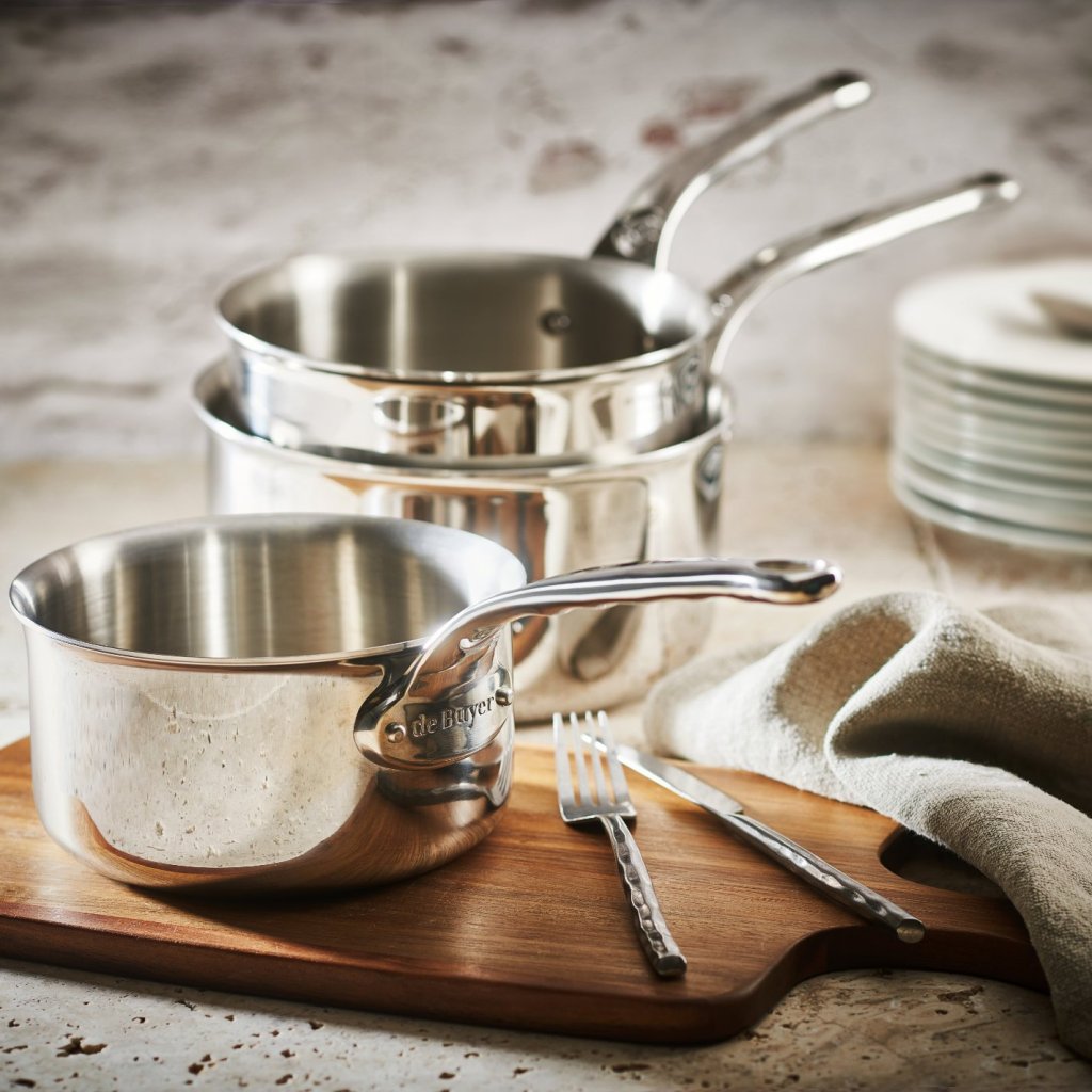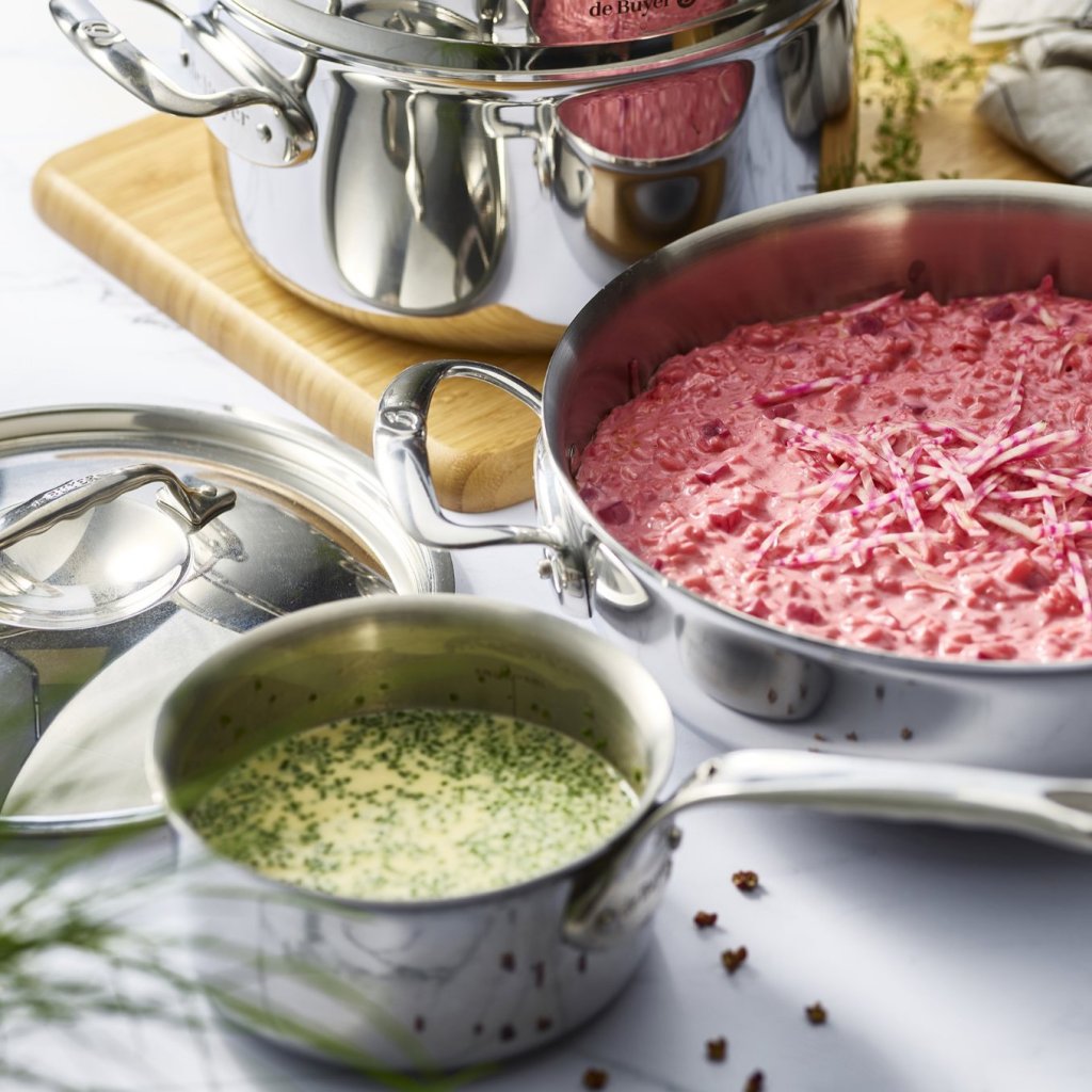 - Nerūsējošā tērauda katliņu komplekts de Buyer AFFINITY ietver trīs daļas ar diametru 16 cm, 18 cm un 20 cm, kas piemērotas ikdienas un profesionālai lietošanai.