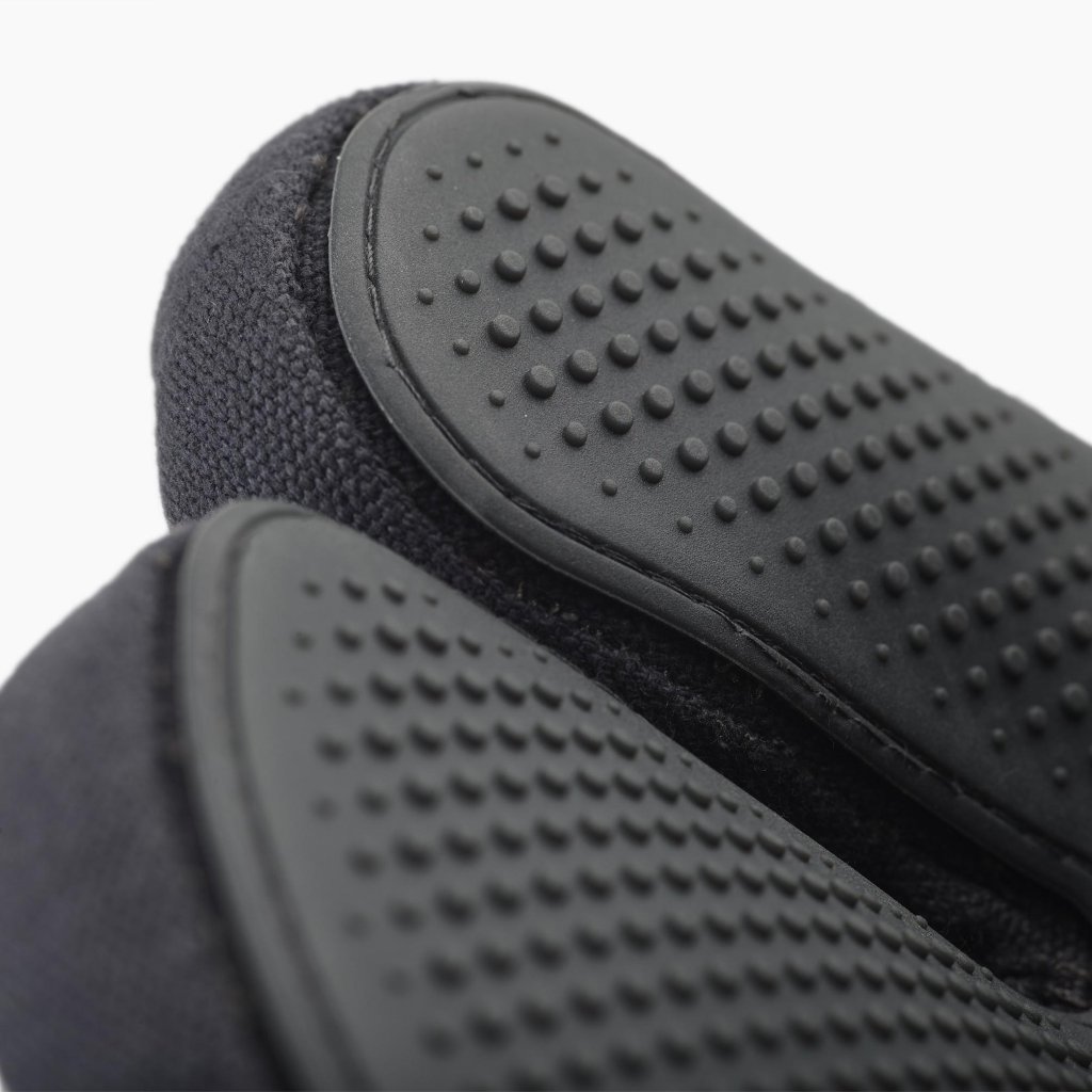- Inovatīvs piegriezums atdala rādītājpirkstu uz katras rokas, lai, satverot pannu vai cepampannu, iegūtu ievērojami labāku sajūtu, stabilitāti un dabiskāku kustību kontroli.