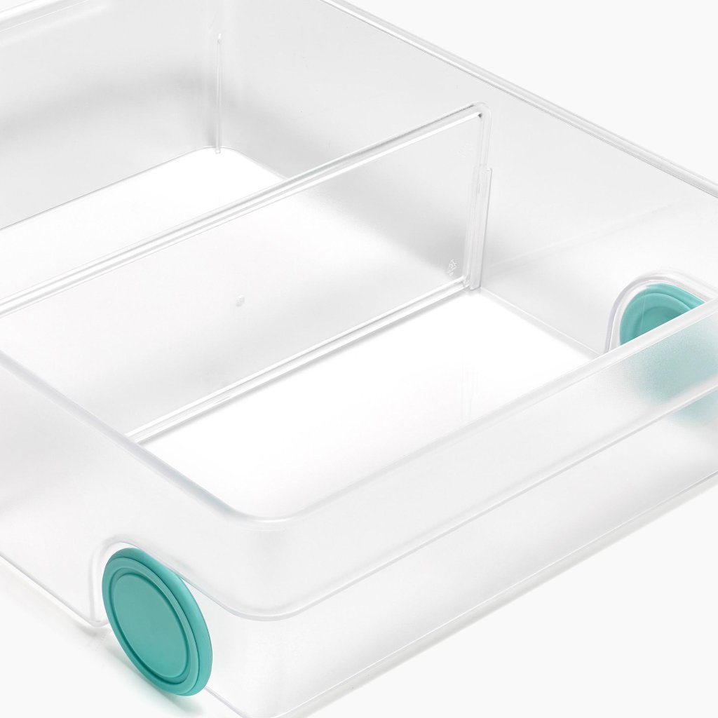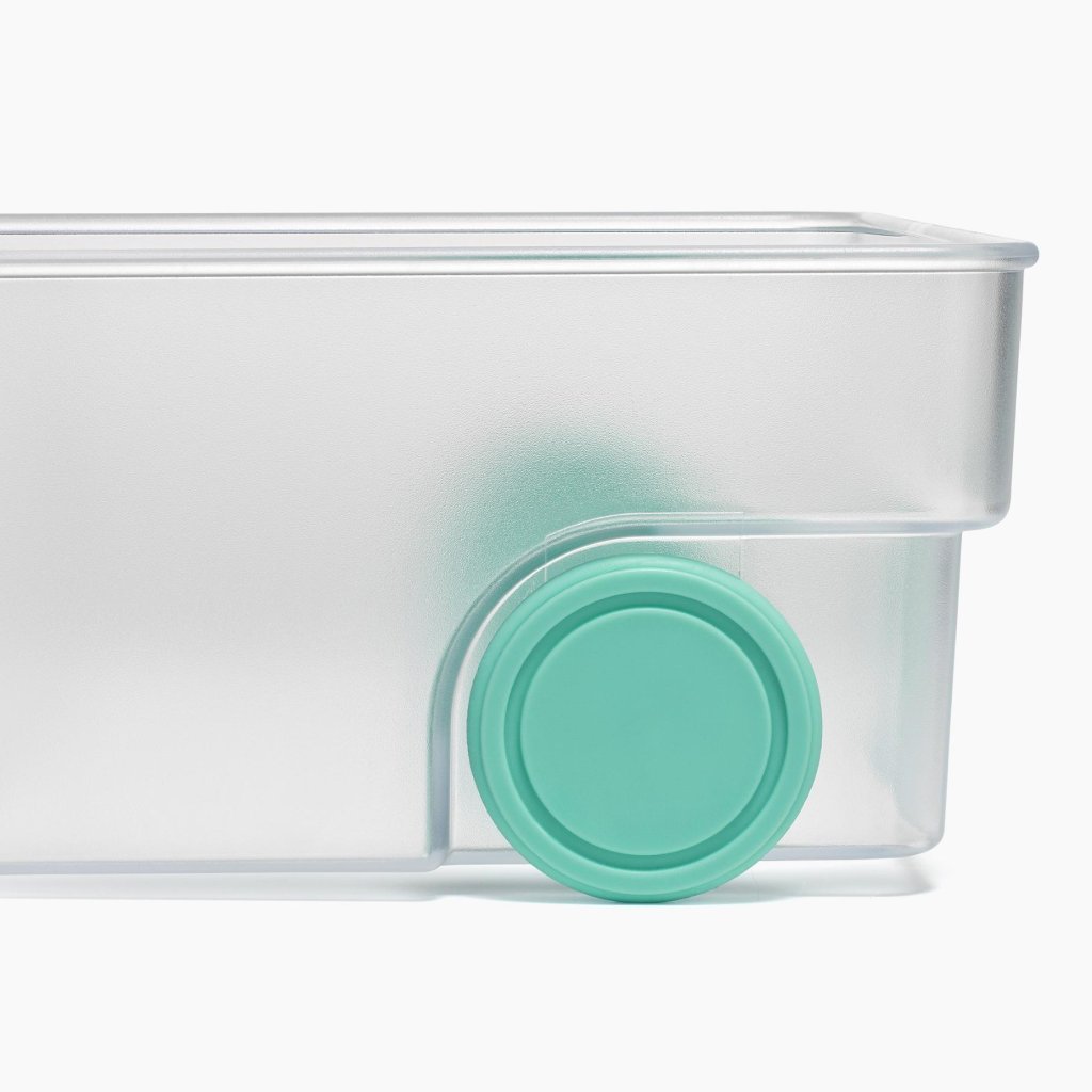 - Integrētie riteņi apakšpusē nodrošina vienmērīgu kastītes izvilkšanu uz āru un nodrošina ērtu piekļuvi uzglabātajiem pārtikas produktiem.