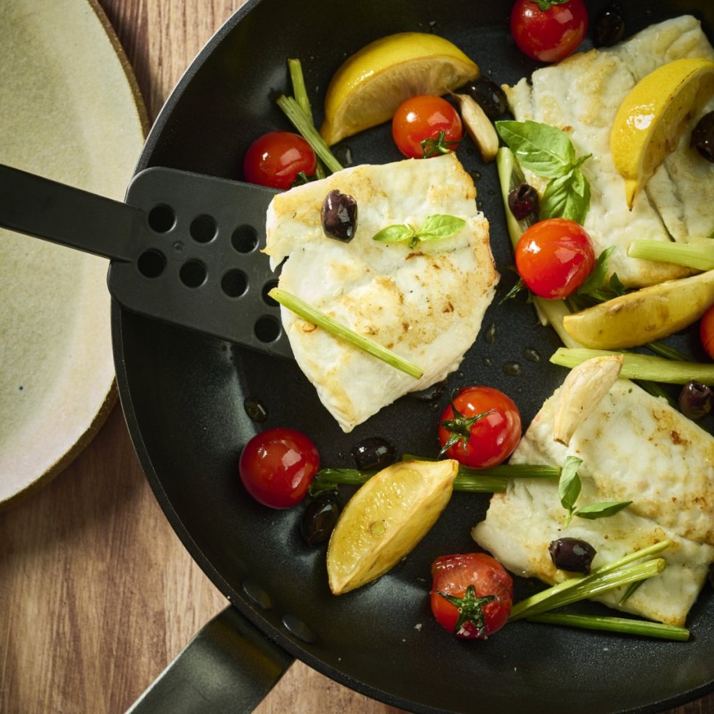 - Materiāls: kalts, pārstrādāts alumīnijs, PFAS nesaturošs keramikas nepiedegošs pārklājums