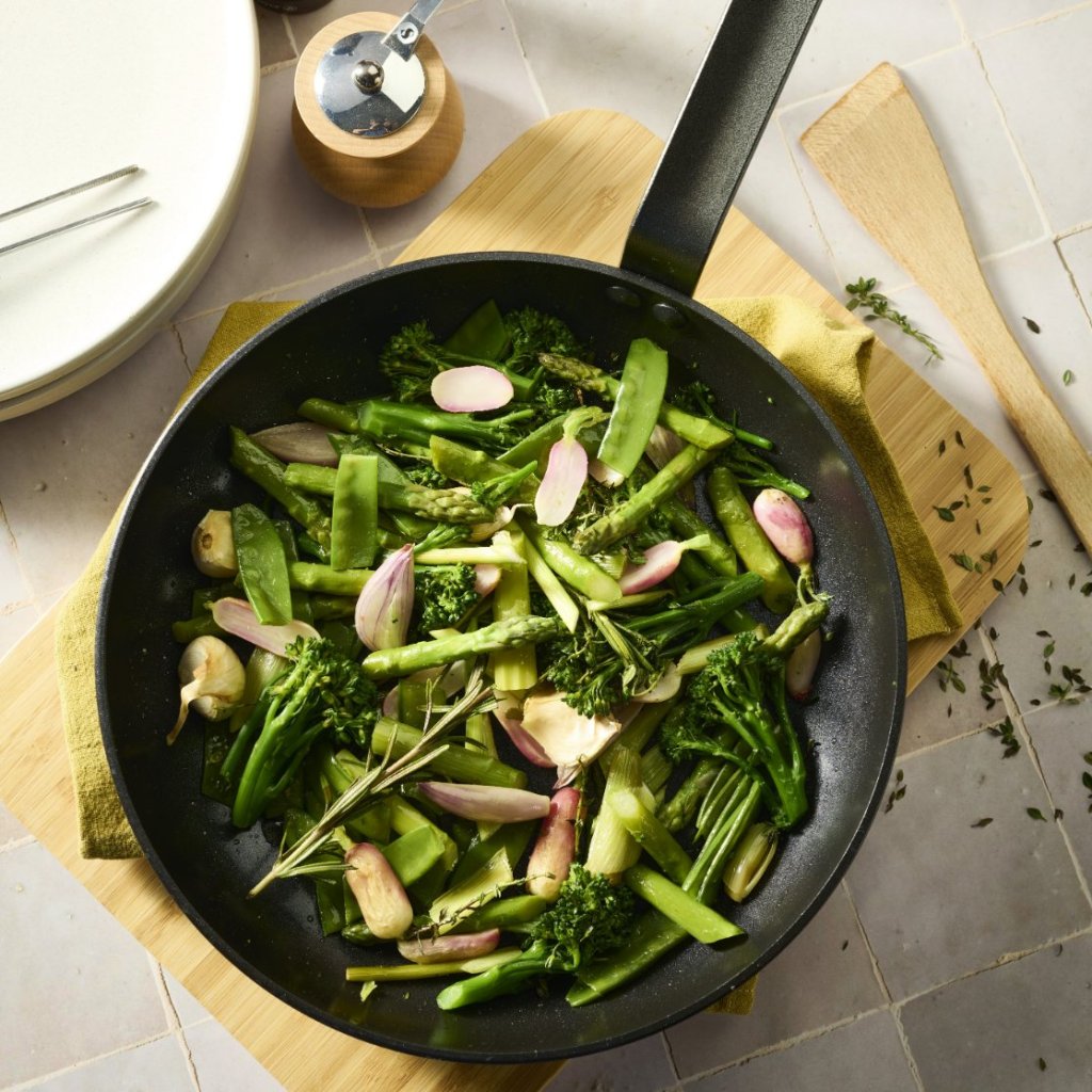 - Materiāls: kalts, pārstrādāts alumīnijs, PFAS nesaturošs keramikas nepiedegošs pārklājums