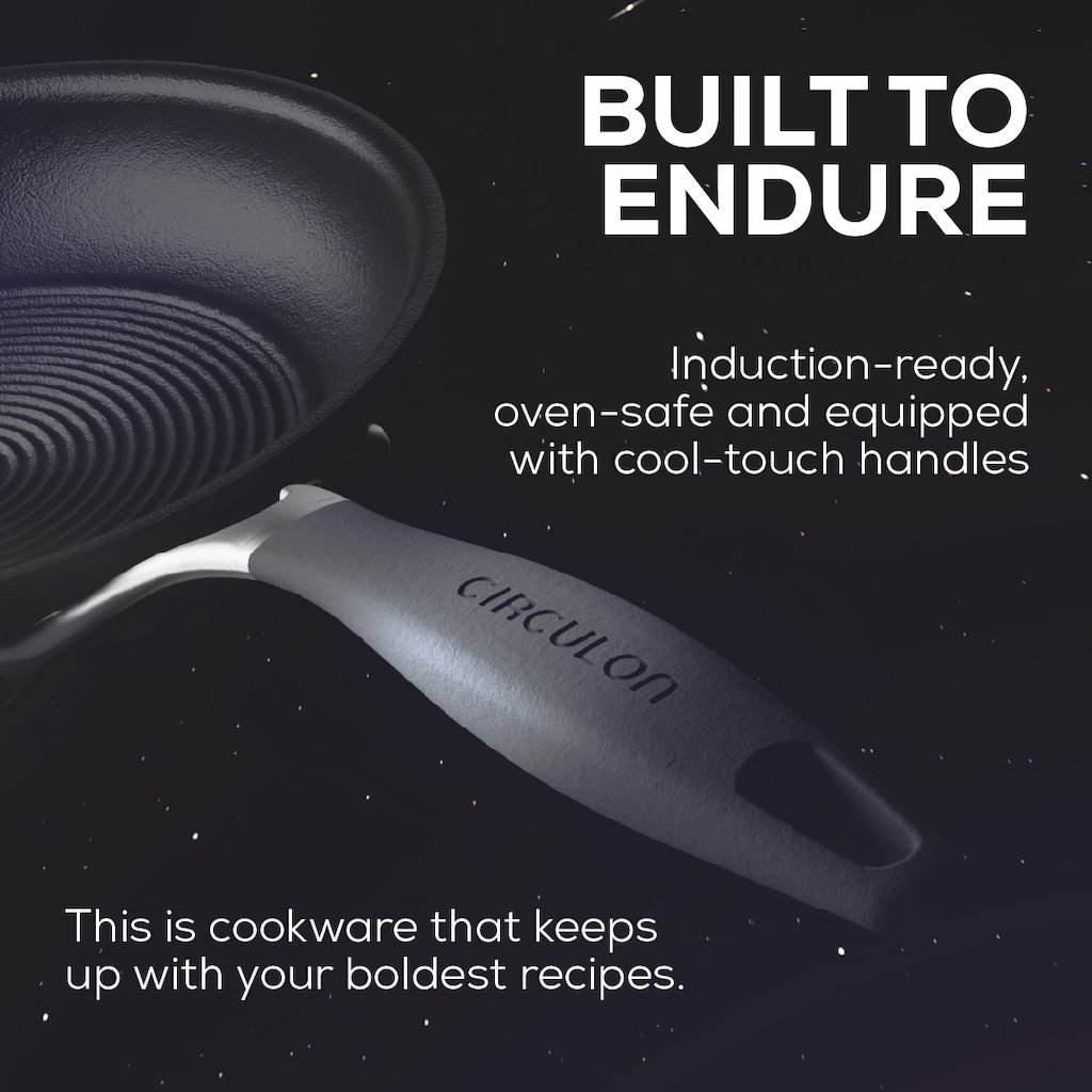 - inovatīvs nepiedegoša panna ar stikla vāku Circulon SCRATCHDEFENSE A1 nodrošina revolucionāru izturību pret skrāpējumiem un ārkārtīgi ilgu kalpošanas laiku