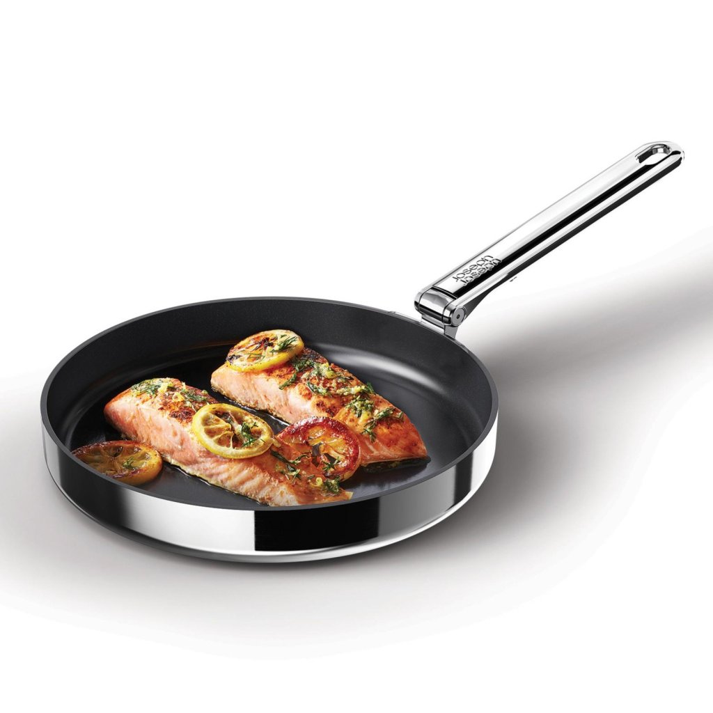 - Joseph Joseph SPACE panna apvieno profesionālu veiktspēju, kompaktu konstrukciju un pārdomātu dizainu efektīvai ikdienas gatavošanai.