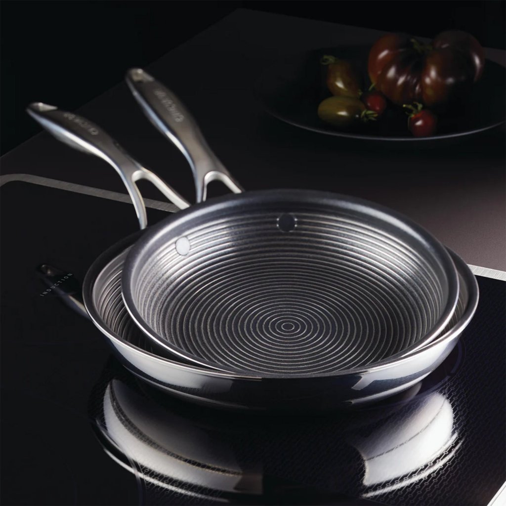 - universālā panna STEELSHIELD apvieno nerūsējošā tērauda izturību ar nepiedegošu virsmu, lai nodrošinātu maksimālu gatavošanas veiktspēju un vieglu tīrīšanu