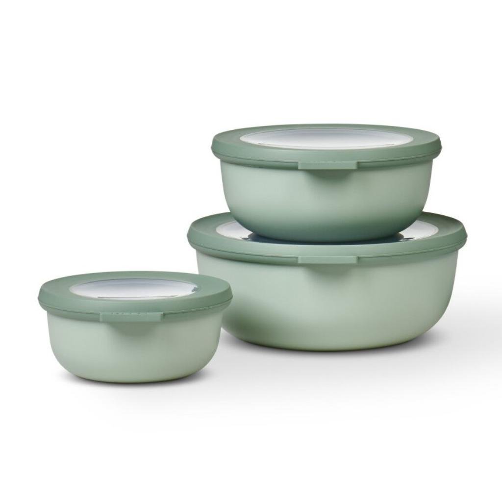 - Trīs praktisku bļodu komplekts Mepal CIRQULA piedāvā 350 ml, 750 ml un 1250 ml tilpumus daudzpusīgai lietošanai virtuvē