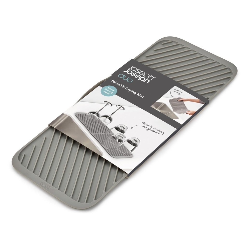 - Paklājiņš trauku žāvēšanai Joseph Joseph DUO ir praktisks risinājums brīžiem, kad nepieciešams izveidot papildu vietu trauku žāvēšanai uz darba virsmas.