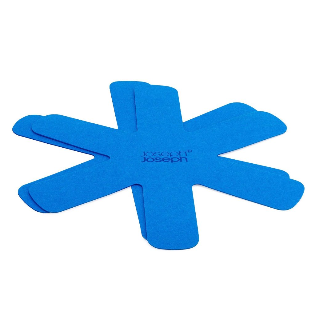 - Iepakojumā ir arī filca pannu aizsargs, kas palīdz novērst virsmas skrāpējumus, uzglabājot sakrautus gabalus vienu uz otra.