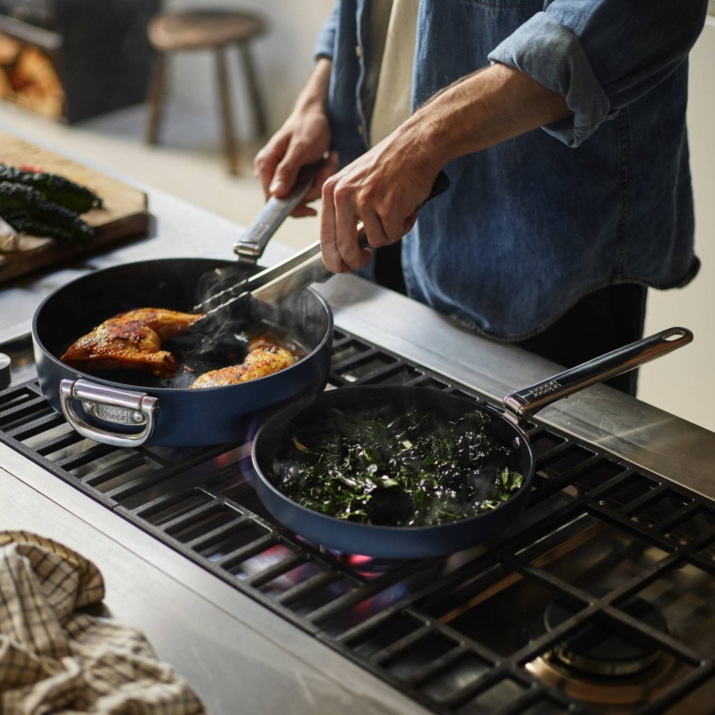 - Pateicoties to izturīgajai konstrukcijai, pannas ir arī cepeškrāsns drošas līdz 232°C, tāpēc tās var viegli pabeigt ēdienu gatavošanu, cepot.