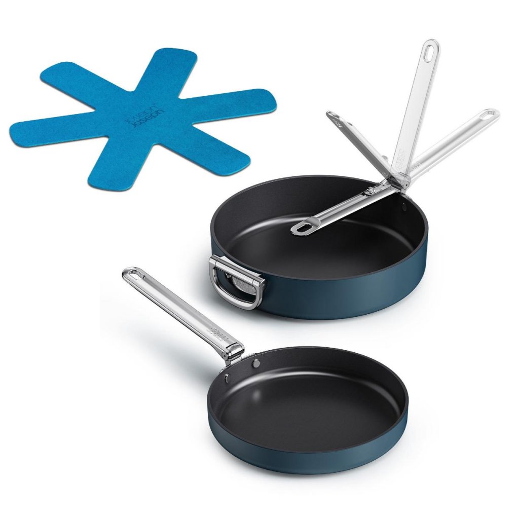 - Pannu komplekts Joseph Joseph SPACE ir paredzēts ikdienas ēdiena gatavošanai, uzsvaru liekot uz vietas taupīšanu un maksimālu praktiskumu virtuvē.