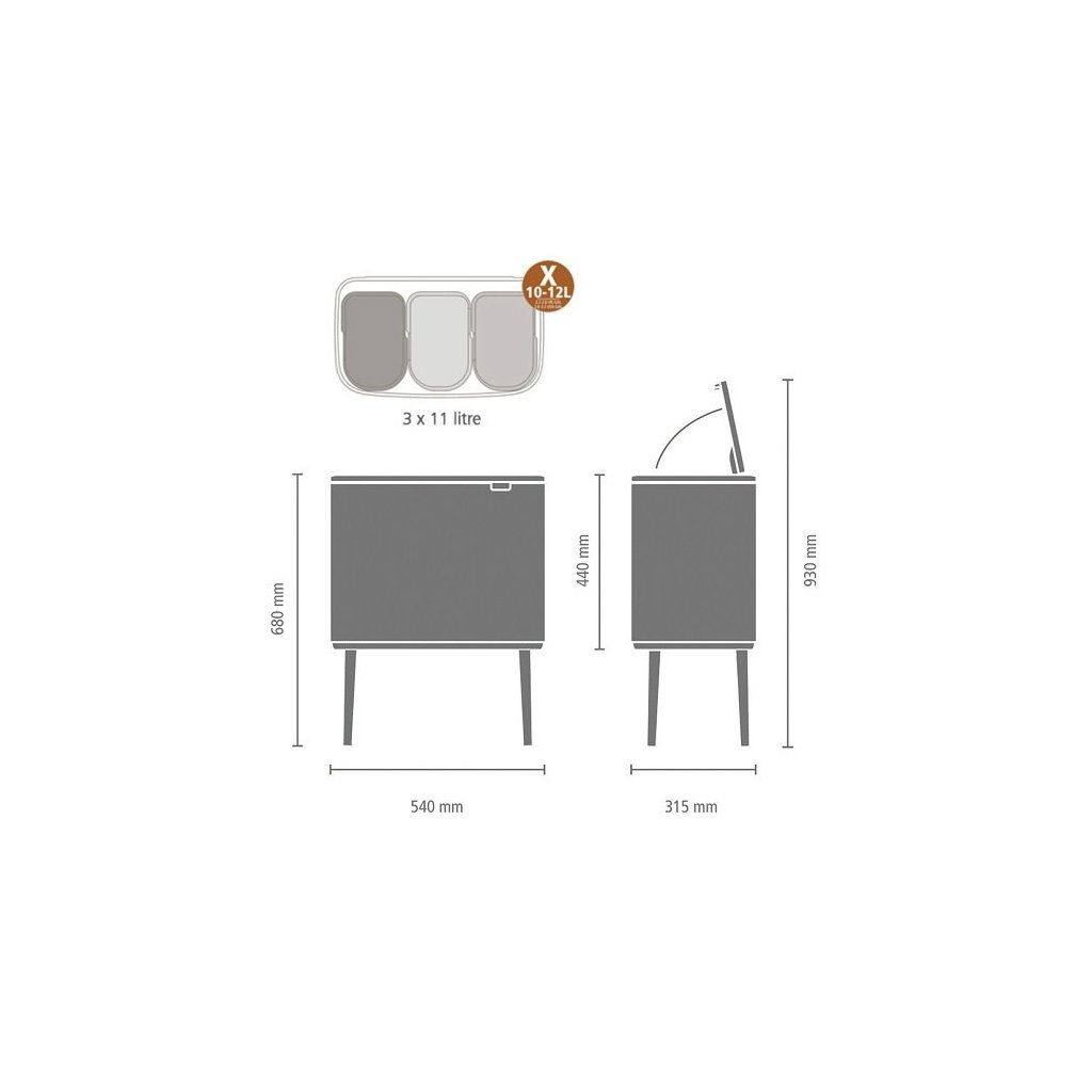 Automātiskā miskaste BO 3 x 11 l, platīns, Brabantia