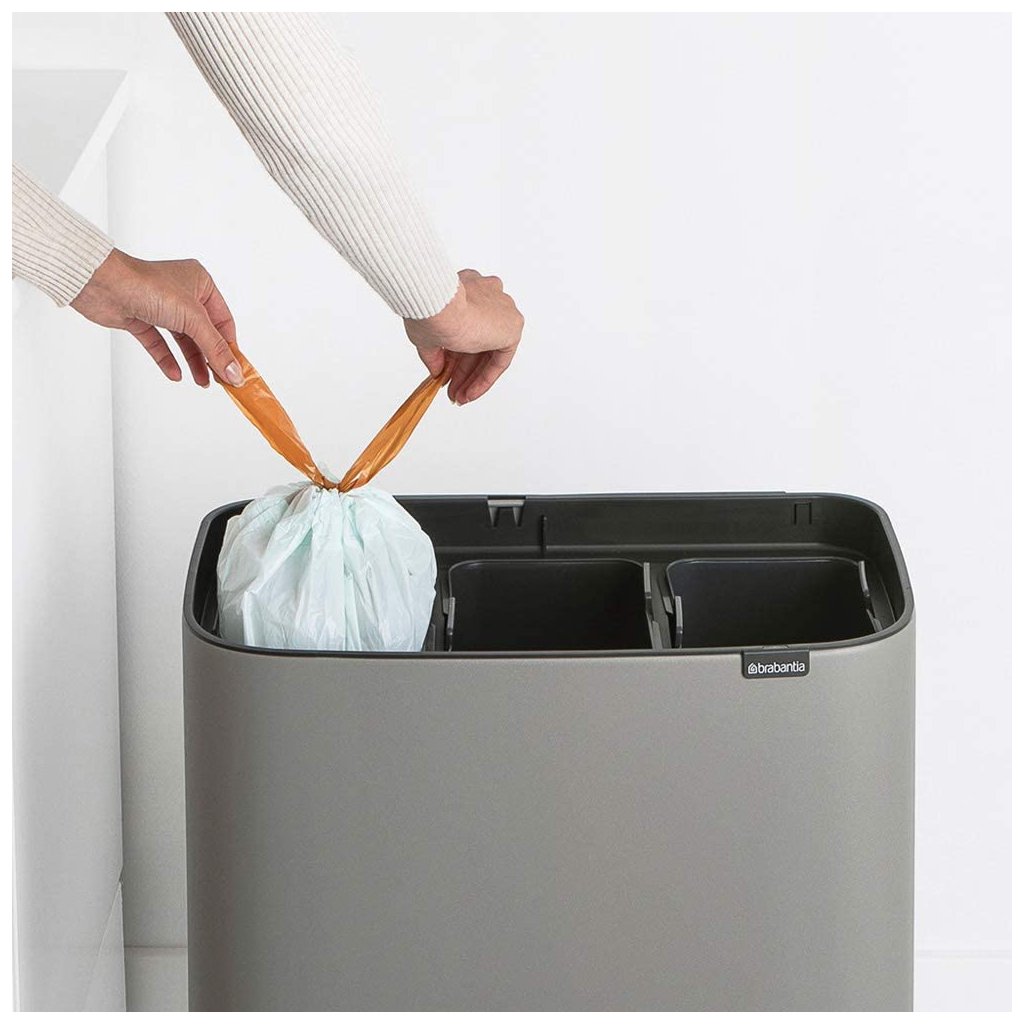 - iekļauti īpaši maisiņi, kas piemēroti tikai BO atkritumu tvertnei - maisiņa mala paliek paslēpta zem atkritumu tvertnes vāka