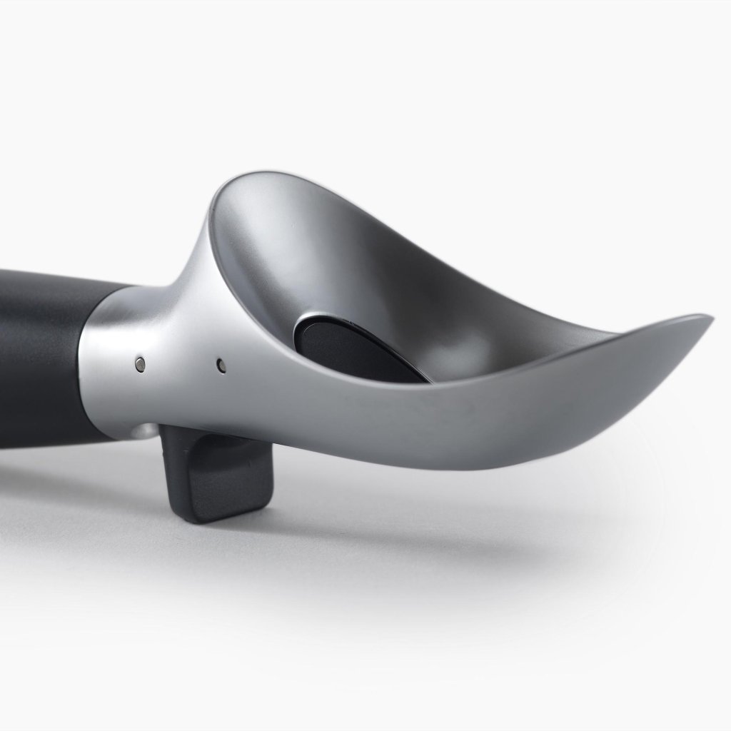 - Ergonomiski veidotais rokturis nodrošina stingru un ērtu satvērienu, porcijojot saldējumu vai citus saldētos kārumus.