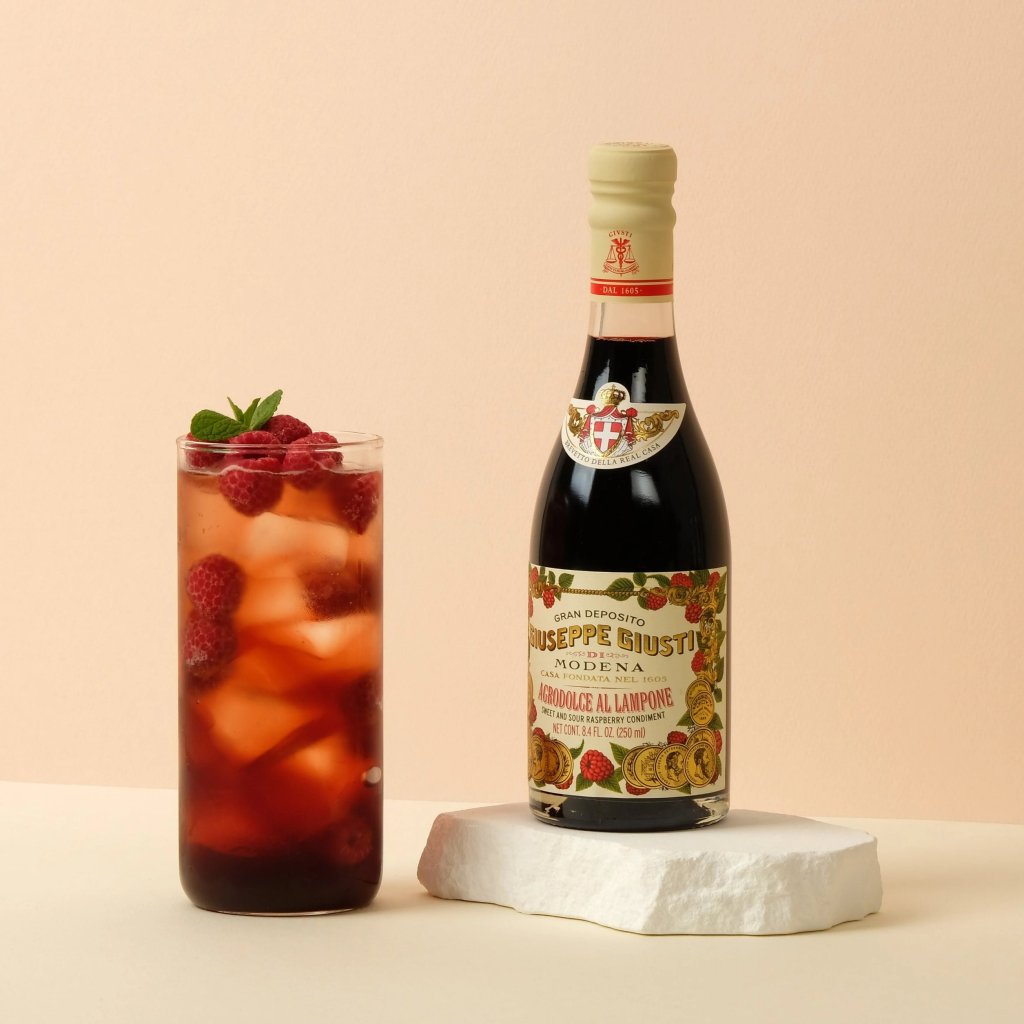 - giusti aromatizētais etiķis ir saldskābā un skābā aveņu garšviela ar intensīvu krāsu un izteikti augļu garšu