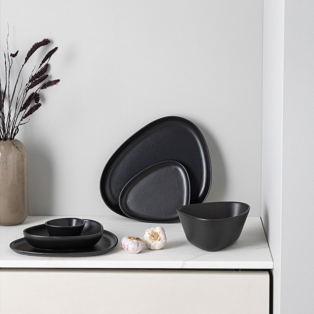 - servēšanas plate CURVE elegantā melnā dizainā ir ideāla izvēle dažādu ēdienu pasniegšanai.