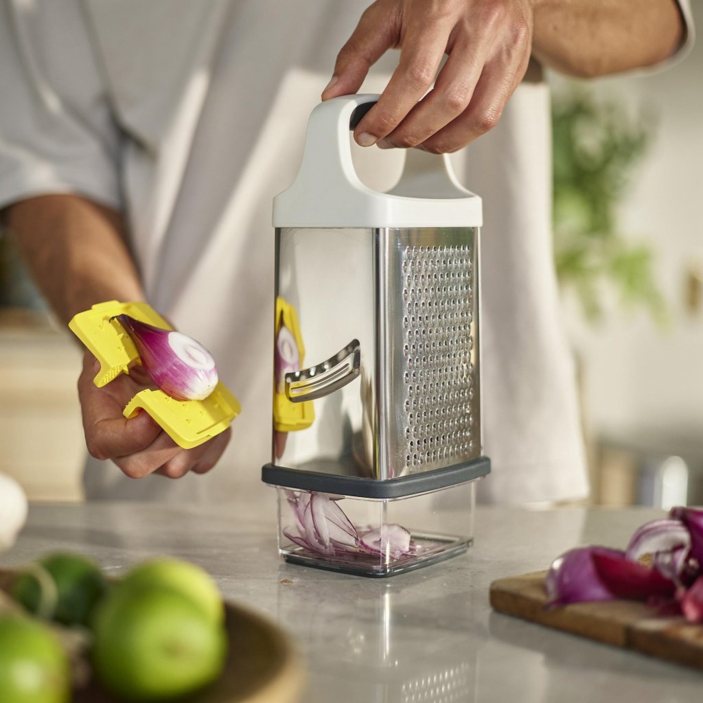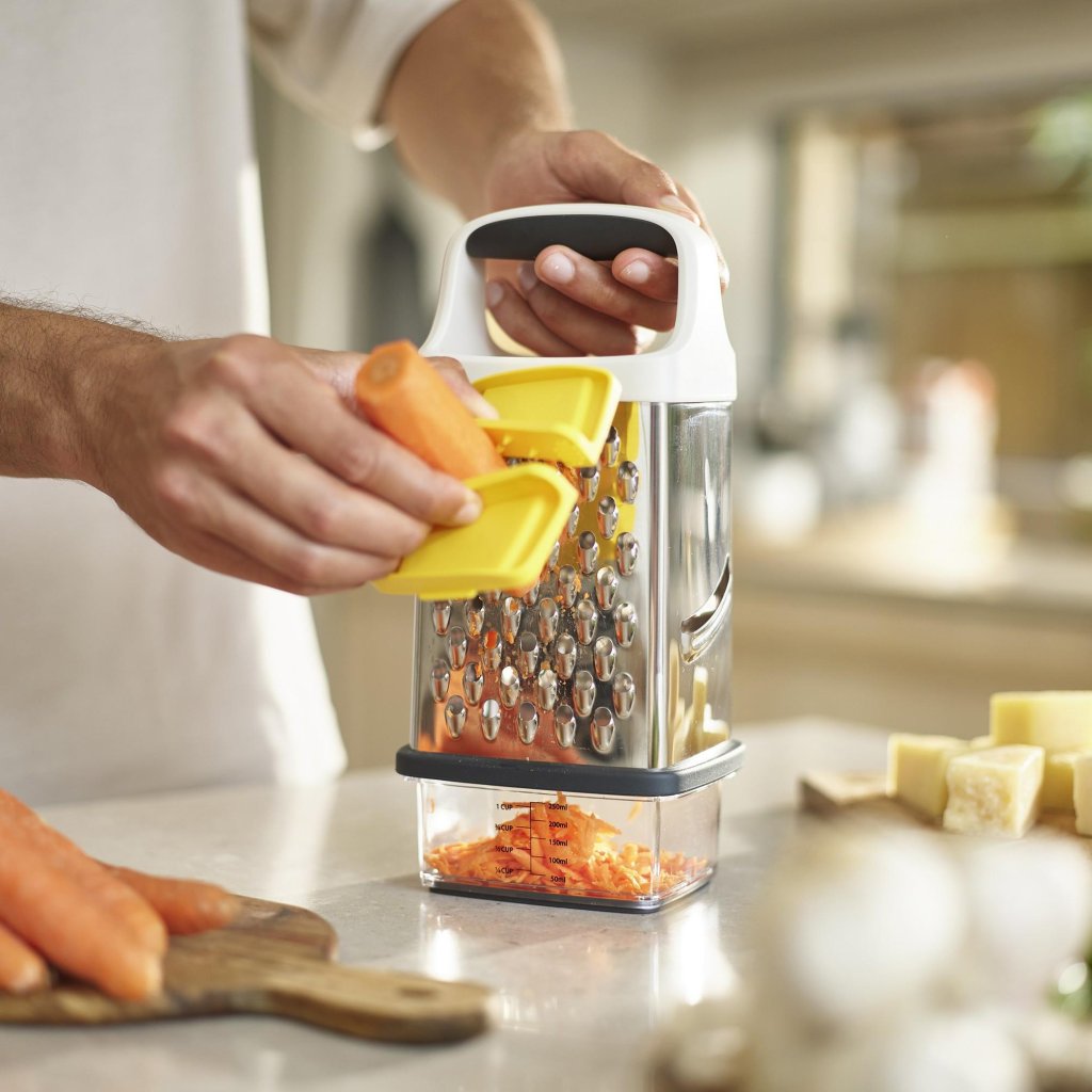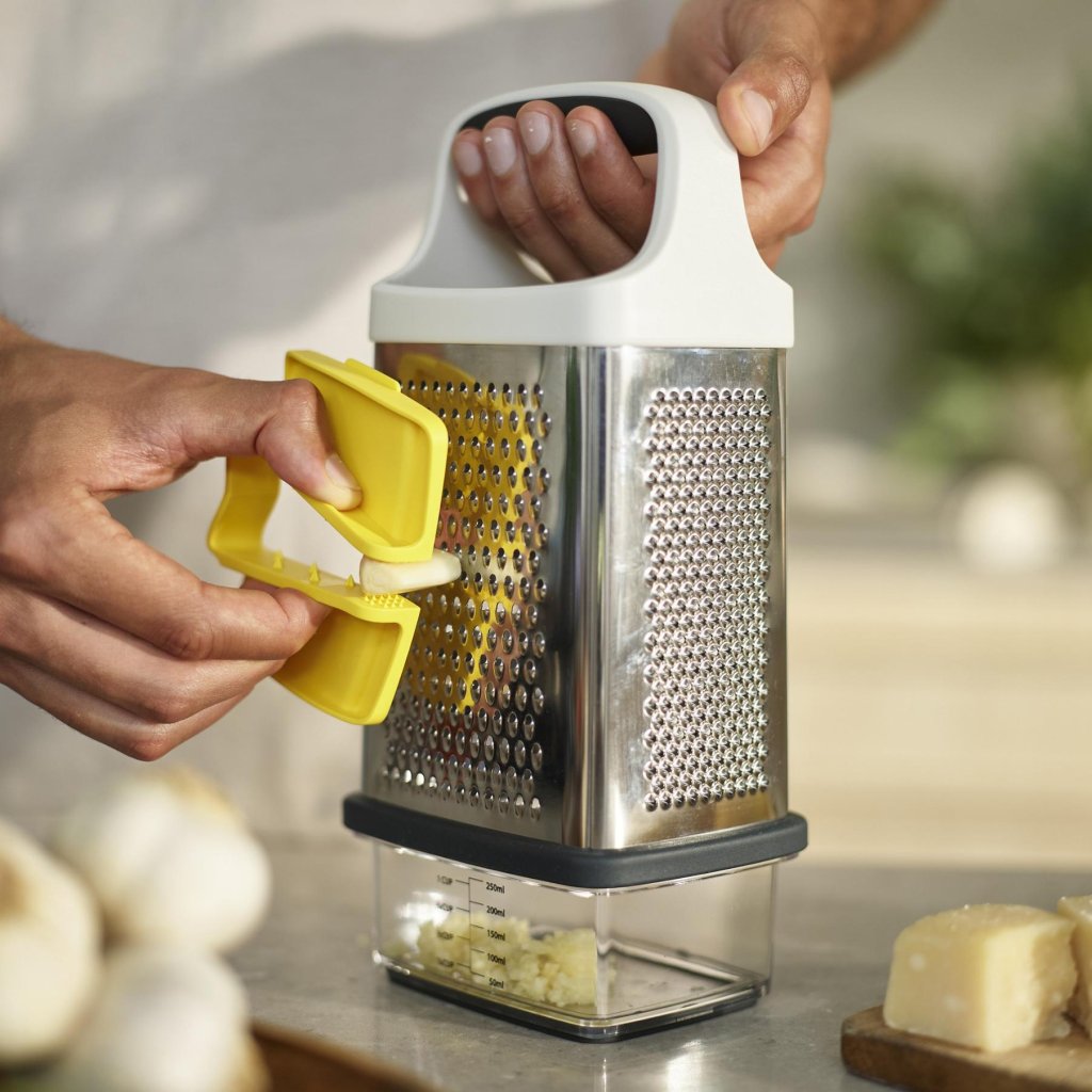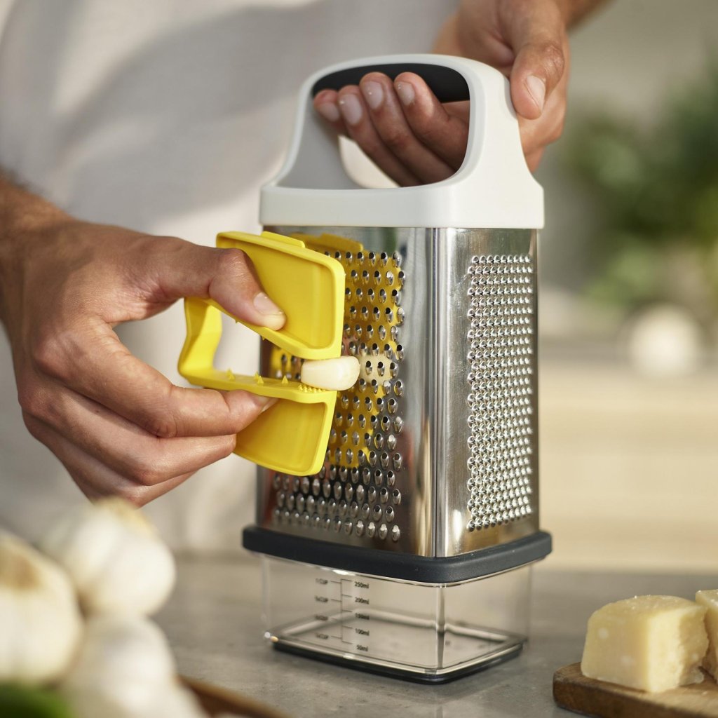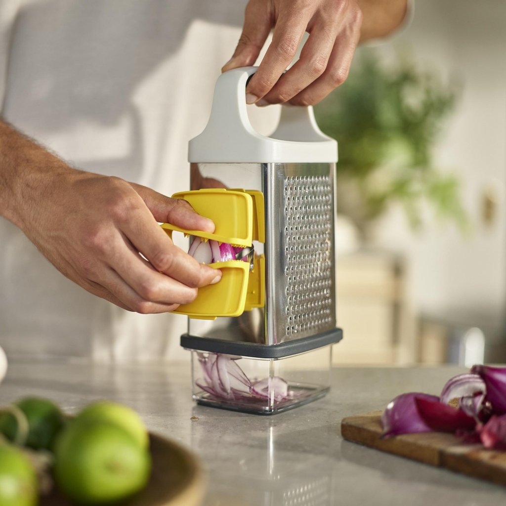 - Rīve Joseph Joseph MULTI-GRIP ir pārdomāts virtuves palīgs, kas atvieglo sastāvdaļu sagriešanu un rīvēšanu un vienlaikus palielina drošību darbā.