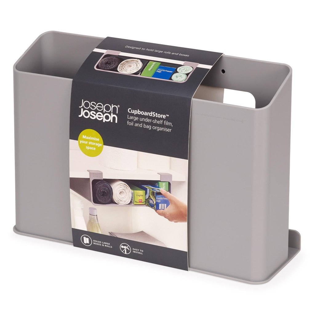 - Joseph Joseph CUPBOARDSTORE ir praktisks risinājums jebkurai virtuvei, kas vēlas, lai plēves, maisiņi un folija būtu kārtīgi uzglabāti un vienmēr pa rokai.