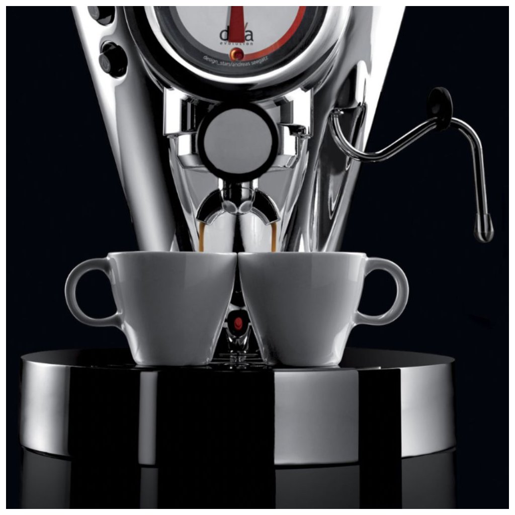 - ikonisks moderns kafijas automāts ar elegantu un dinamisku dizainu