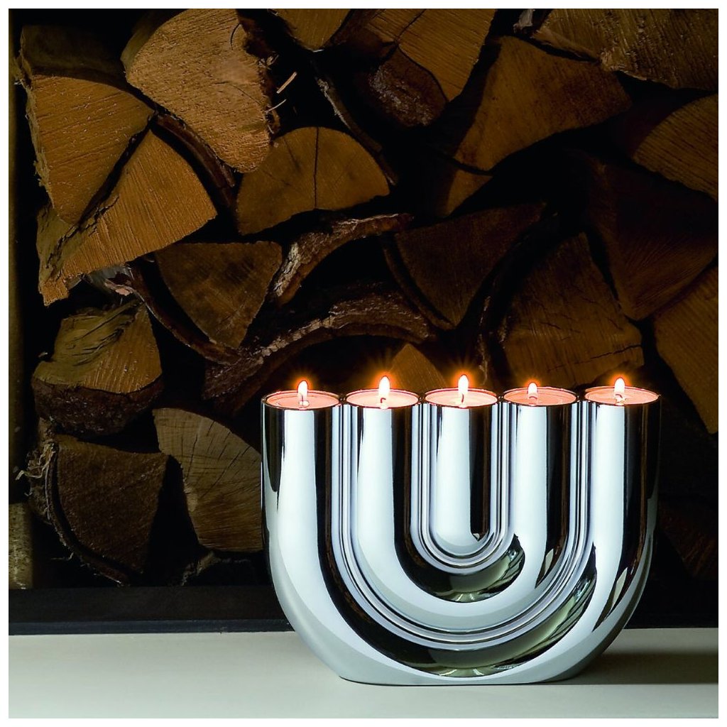 Svečturis tējas svecēm DOUBLE U 23 cm, sudraba krāsa, Philippi