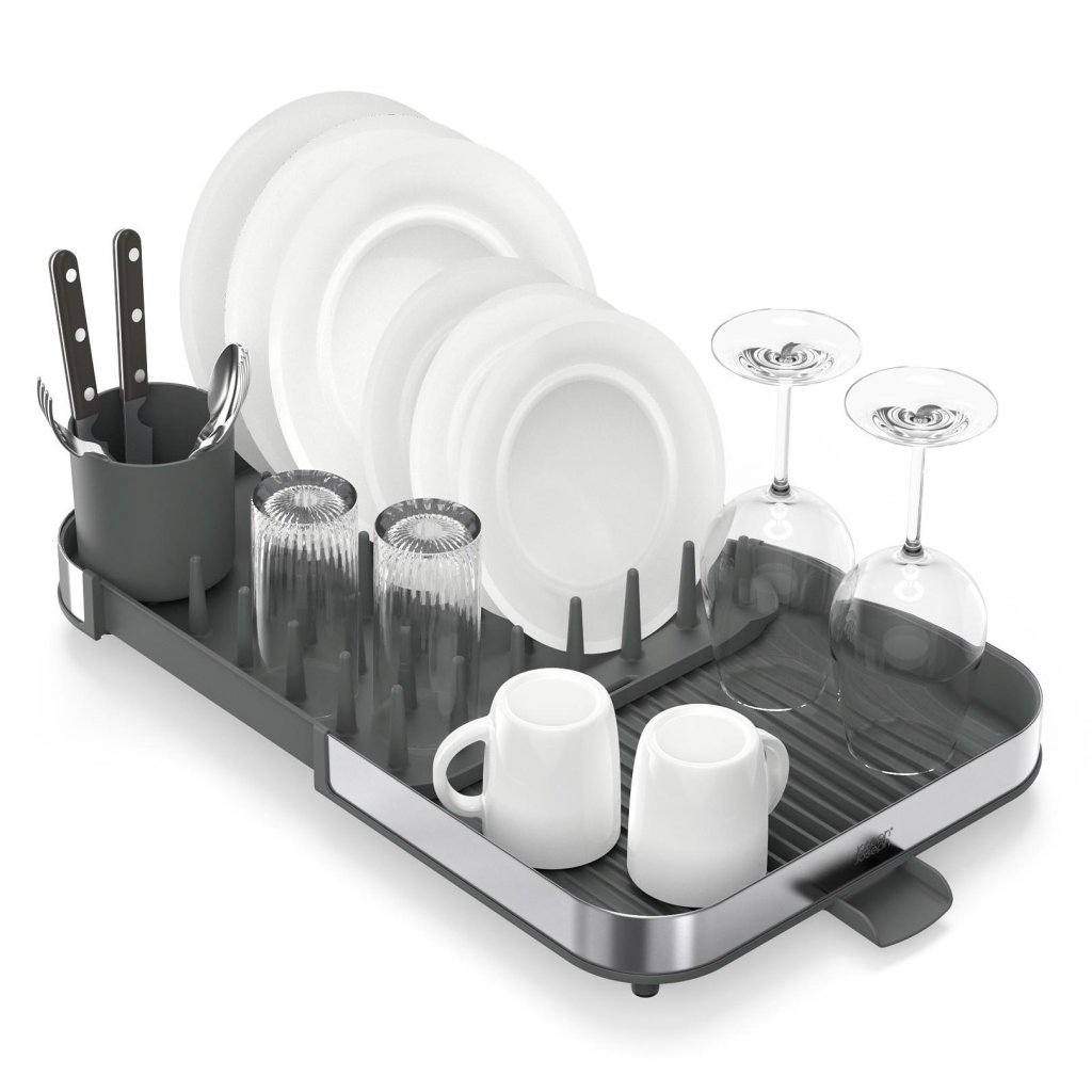 - Paplašināmais Joseph Joseph DUO izlietnes statīvs ir praktisks palīgs ikdienas trauku žāvēšanai un ļauj ērti pielāgot telpu jūsu virtuves aktuālajām vajadzībām.