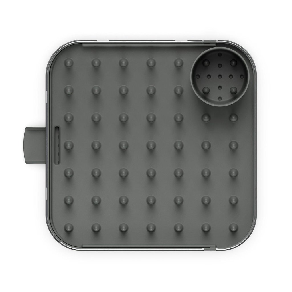 - Izvelkamā plakanā virsma nodrošina ideālu vietu krūzīšu, bļodiņu vai glāžu novietošanai, kurām žūstot nepieciešams stabils un līdzens atbalsts.