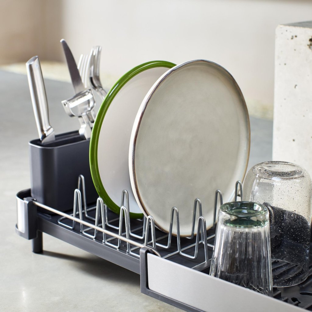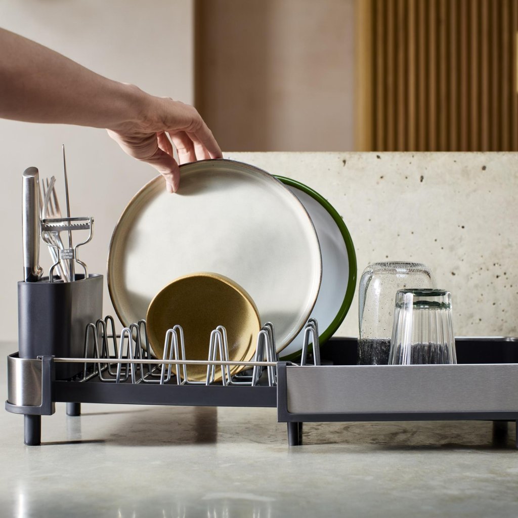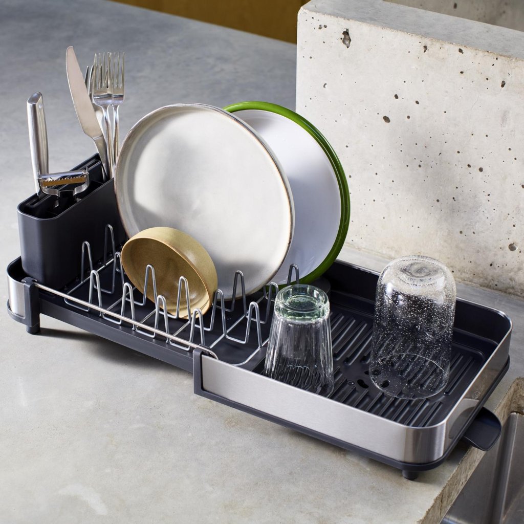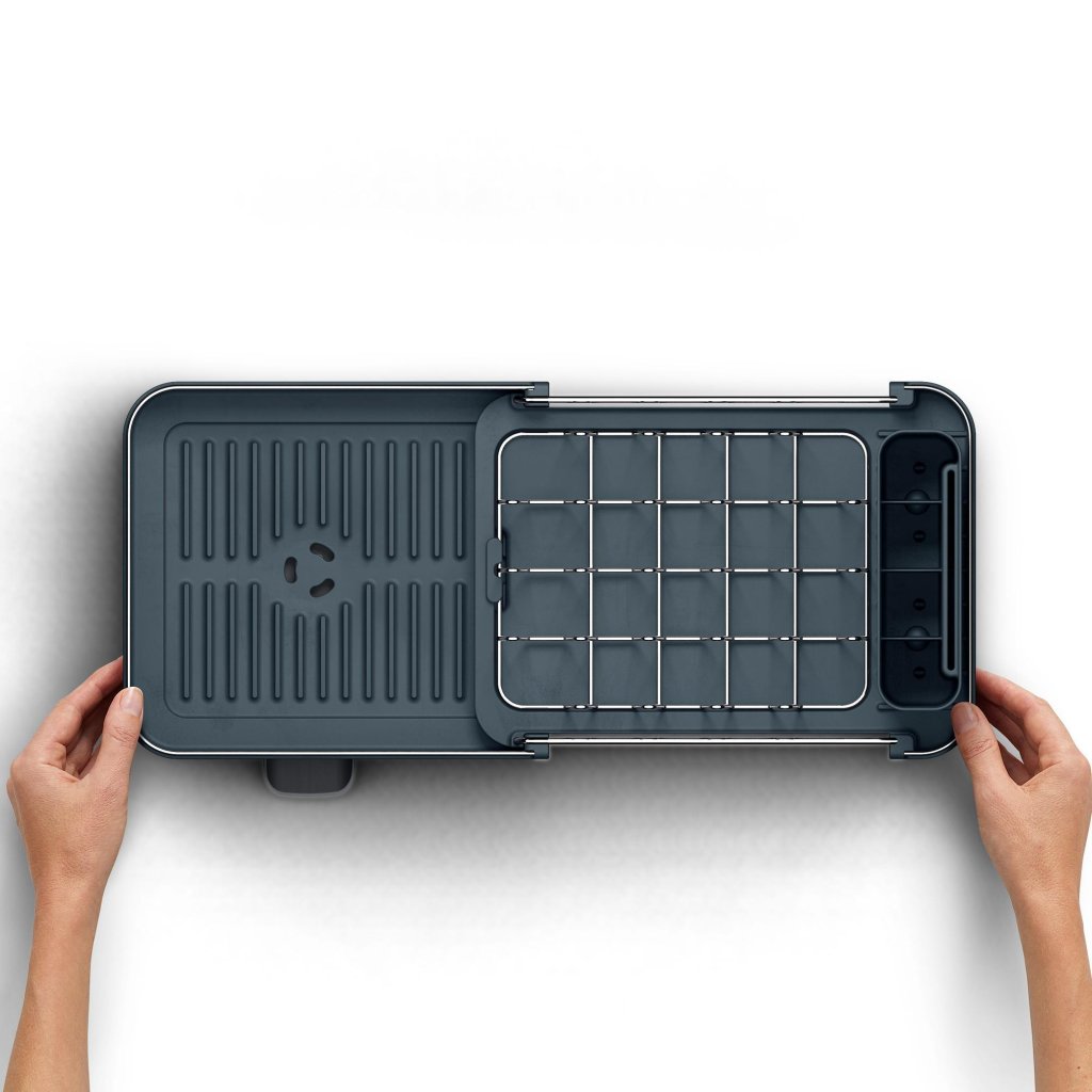 Dažreiz tie ir tikai daži krūzes un šķīvji. Un dažreiz pēc vakariņām ir sajūta, ka tikko esat apkalpojuši nelielu kafejnīcu. Kompaktais trauku žāvētājs ar to tiks galā savā veidā – lielāko daļu laika tas paliek neuzkrītoši šaurs, bet, kad trauki sāk testēt darba virsmas ietilpību, jūs to vienkārši paplašināsiet un radīsiet papildu vietu žāvēšanai.