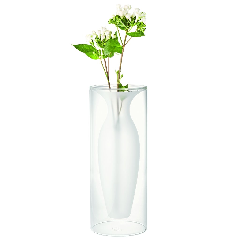 - Vāzes iekšpusē, kas izgatavota no borsilikāta stikla ar smilšu strūklu