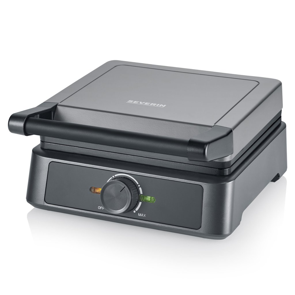 - tumšās krāsas un metāliskā izskata elegantā kombinācija piešķir vafeļmašīnai modernu un profesionālu stilu