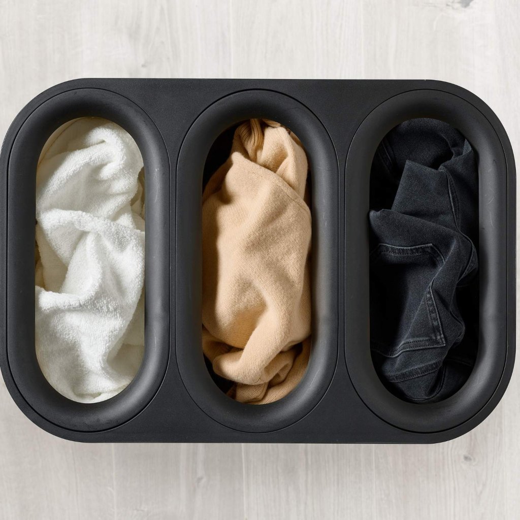 - Veļas kaste Joseph Joseph TOTA TRIO LUXE melnā krāsā ir elegants un praktisks risinājums veļas šķirošanai modernā mājsaimniecībā.