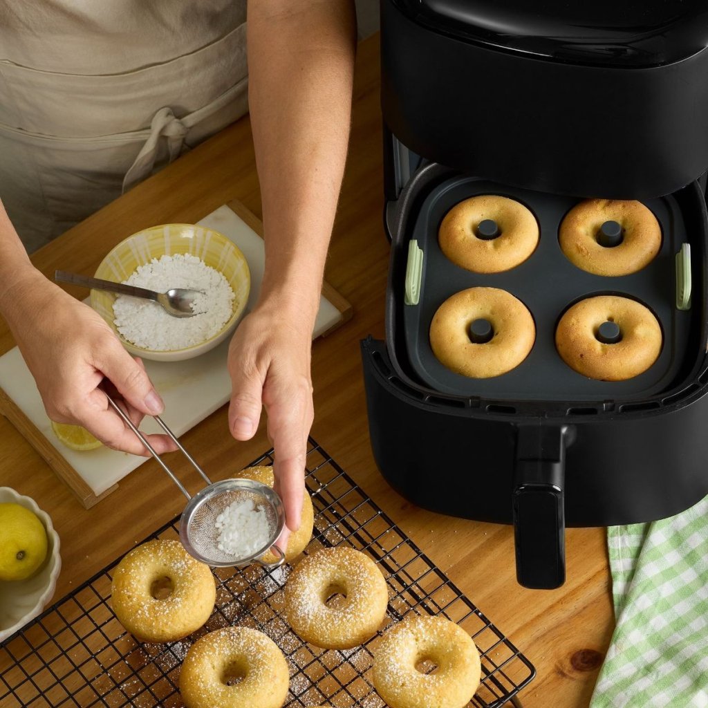 Dažreiz ir nepieciešams kaut kas salds, kas ir kā balva, nevis kompromiss no cepumu atvilktnes. Virtuļu veidne karstā gaisa fritierim piešķirs precīzu formu un četras porcijas vienlaikus, lai jūs varētu pagatavot nelielu mājās gatavotu virtuļu rituālu bez eļļas un bez nepieciešamības atgādināt par ātro ēdināšanu. Tieši šādu praktiskumu jūs ātri iemīlēsiet.