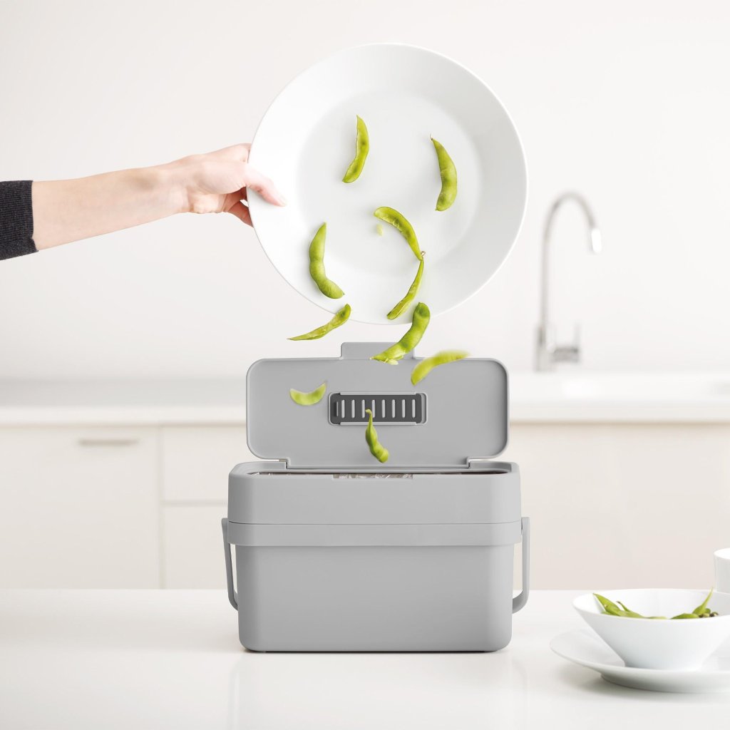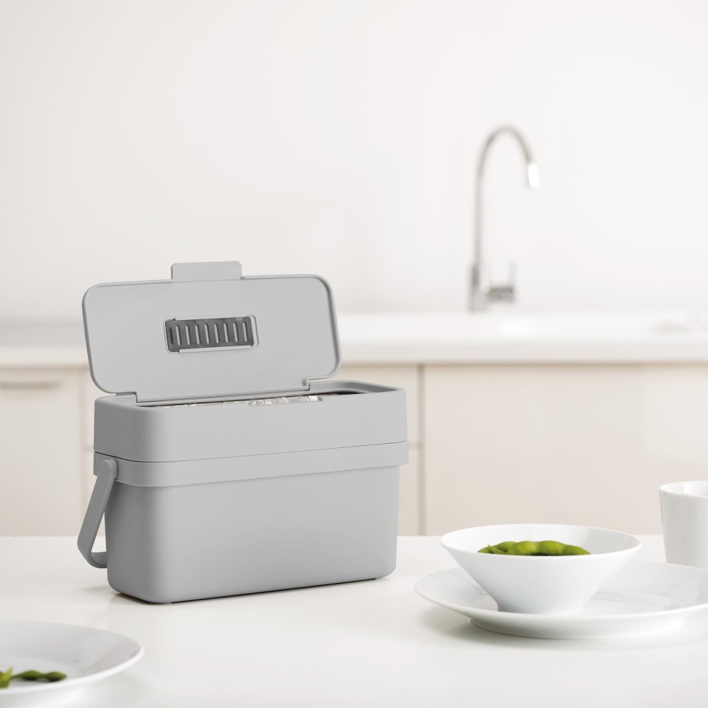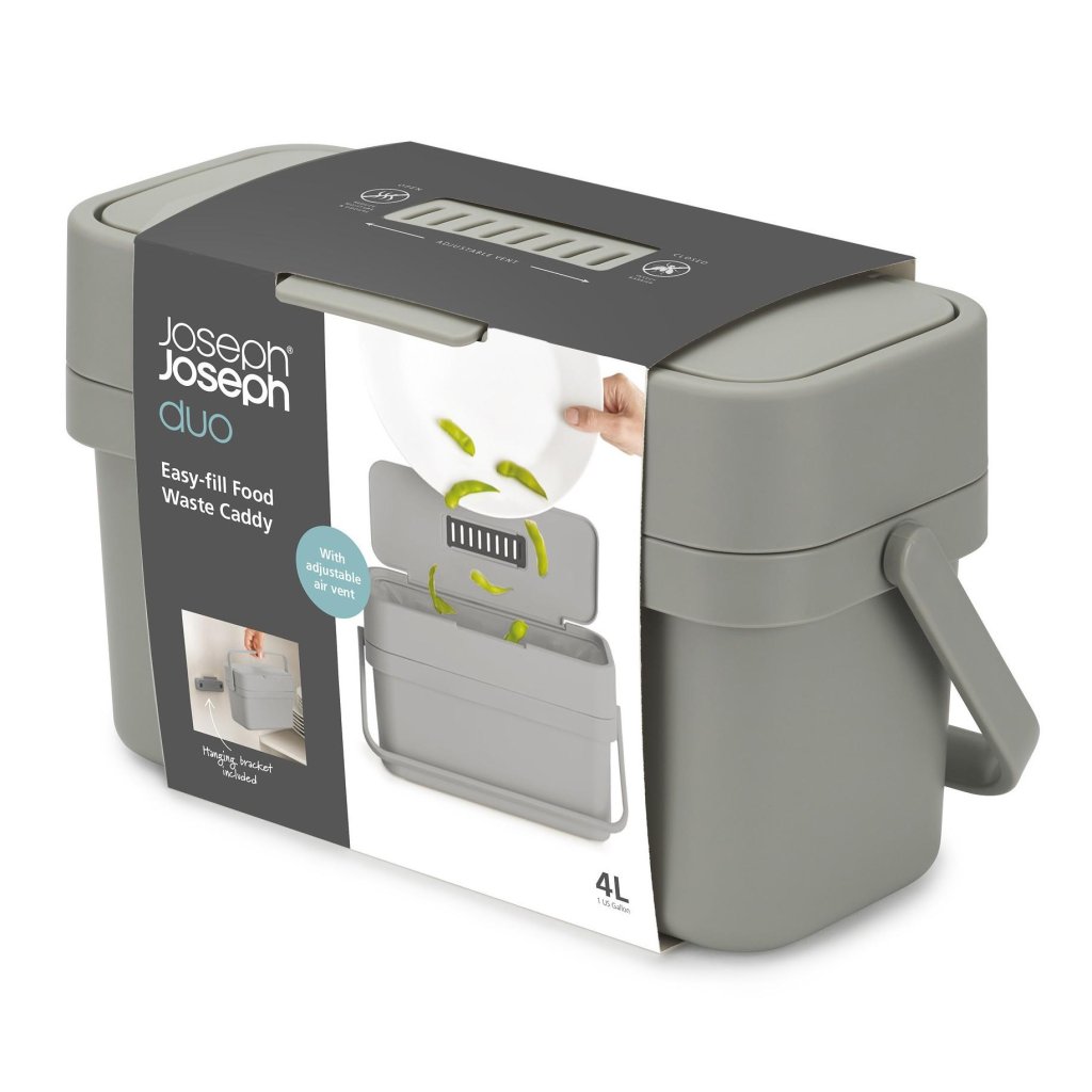 - Joseph Joseph DUO kompostējamo atkritumu trauks ar 4 litru tilpumu ir praktisks un higiēnisks risinājums bioatkritumu šķirošanai tieši virtuvē.