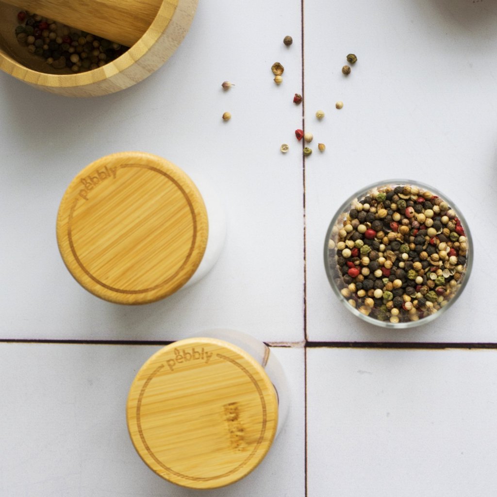 Virtuves pārtikas trauks PKV-014 180 ml, 3 trauku komplekts, stikls/bambuss, Pebbly