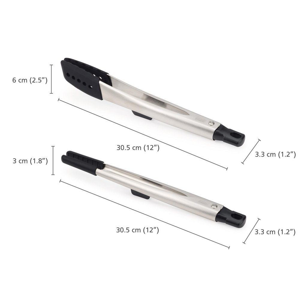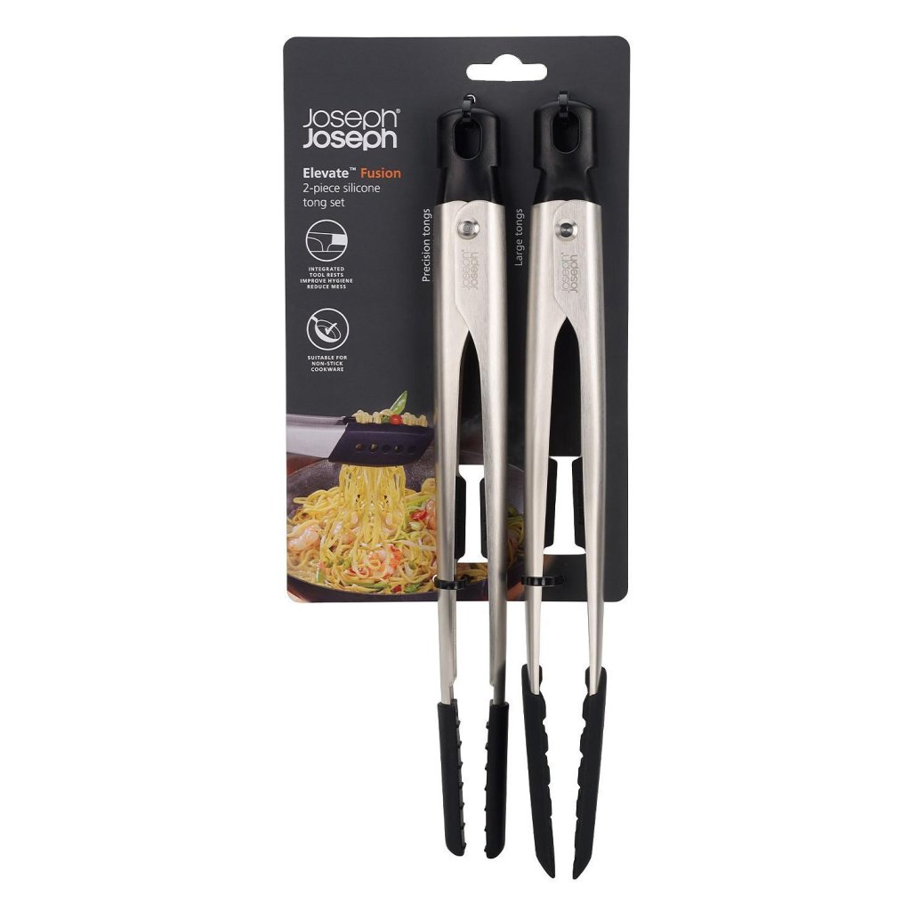 - Joseph Joseph ELEVATE FUSION virtuves knīpju komplekts piedāvā divus izmērus knīpju ērtai dažādu veidu pārtikas produktu apstrādei gatavošanas, pasniegšanas vai grilēšanas laikā.