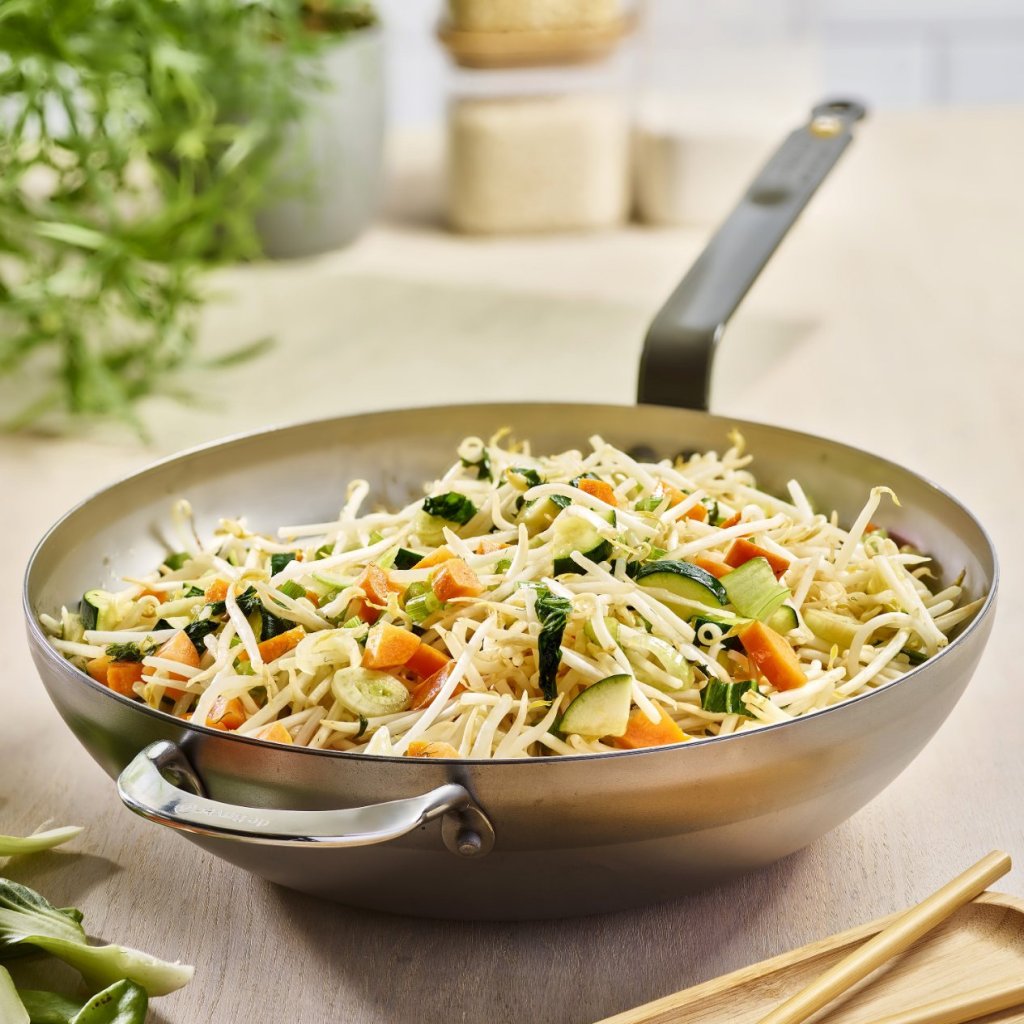 - noapaļots wok panna ar platu dibenu labākai stabilitātei